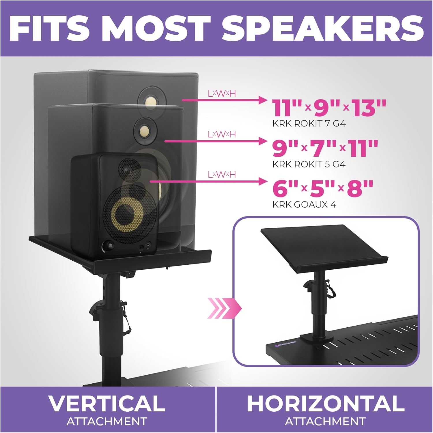 Liquid Stands Studio Monitor Stands - Music Studio Desktop Speaker Stand - 2 Pack 12x9 Clamp-on Adjustable Short or Tall Speaker Support for Music Booth Desk Audio Monitor Stand Mount with Tilt