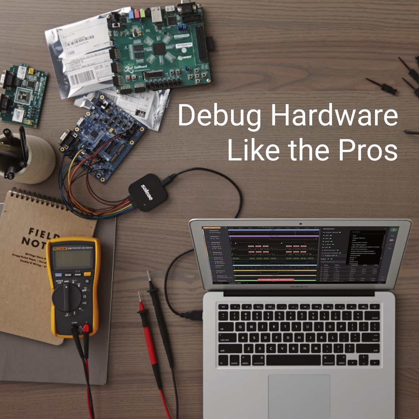 The Saleae Logic 8 is a powerful logic analyzer that allows you to record and display signals in your circuit, enabling fast and efficient debugging.