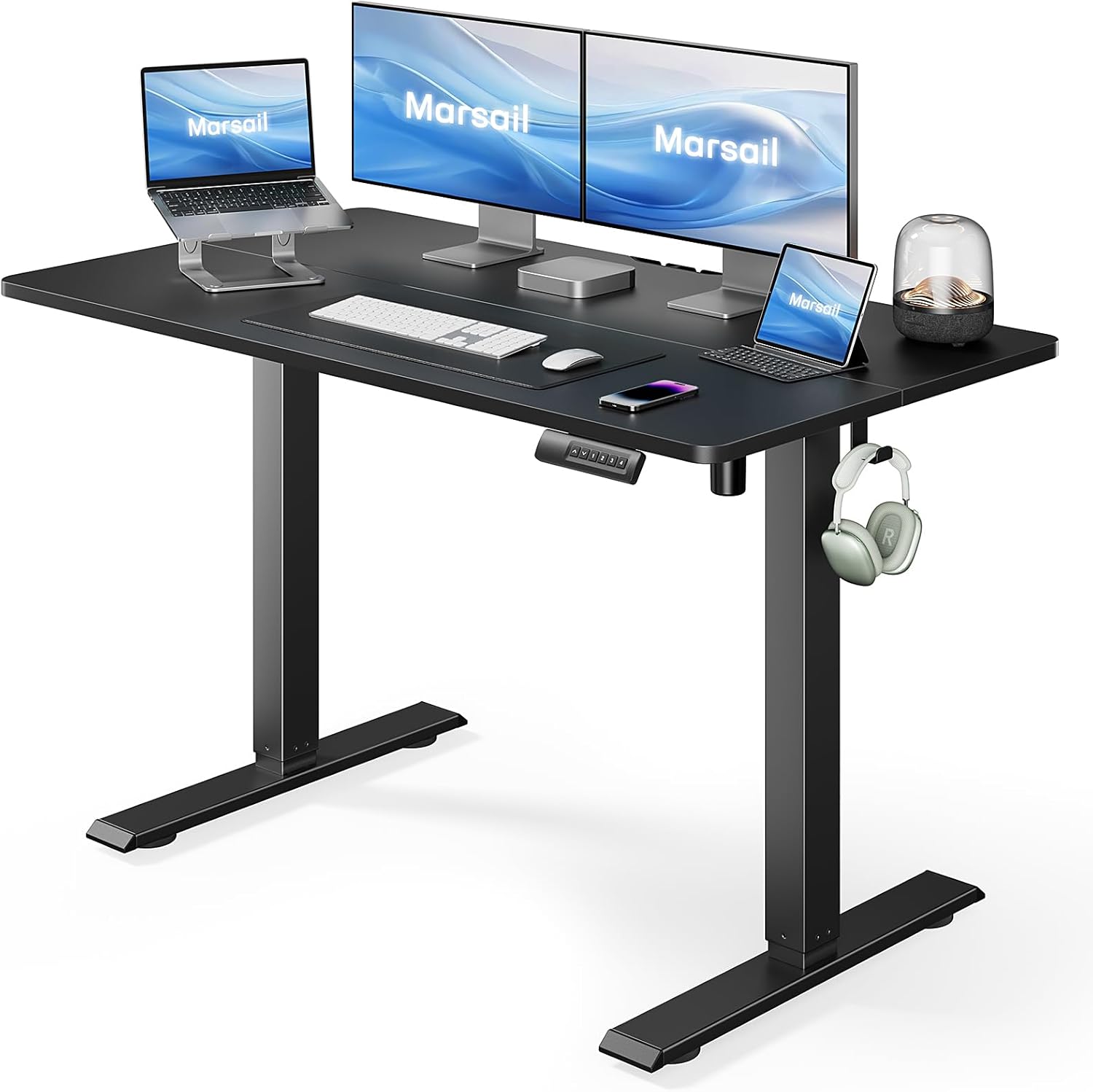 Marsail Standing Desk, Adjustable Height, Stand up Home Office Desk, 48x24 Inch Electric Standing Computer Desk, with 4 Memory Presets, Headphone Hook, Cable Organizer, Black