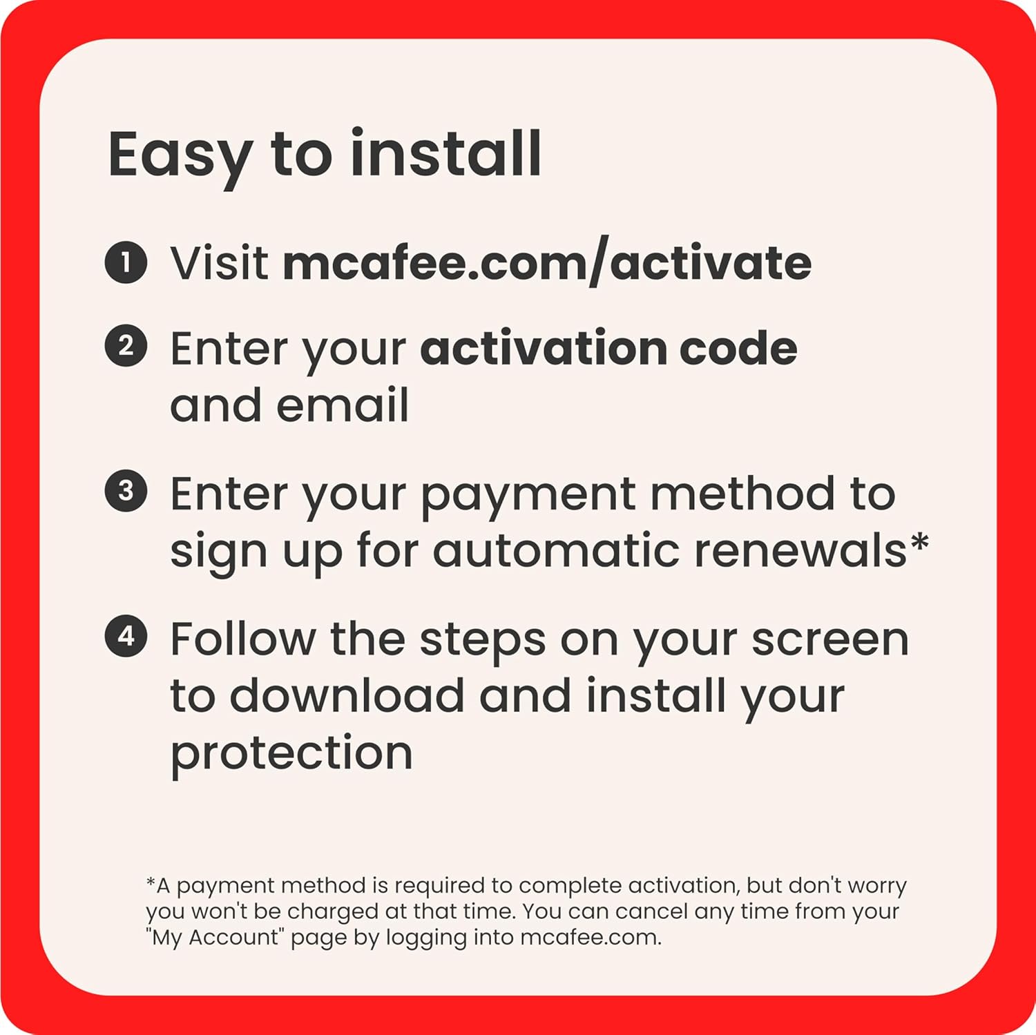 SUBSCRIPTION AND AUTO-RENEWAL NOTICE: Subscription automatically renews annually to provide hassle-free protection. A payment method is required to complete activation, but don't worry, you won't be charged at that time.