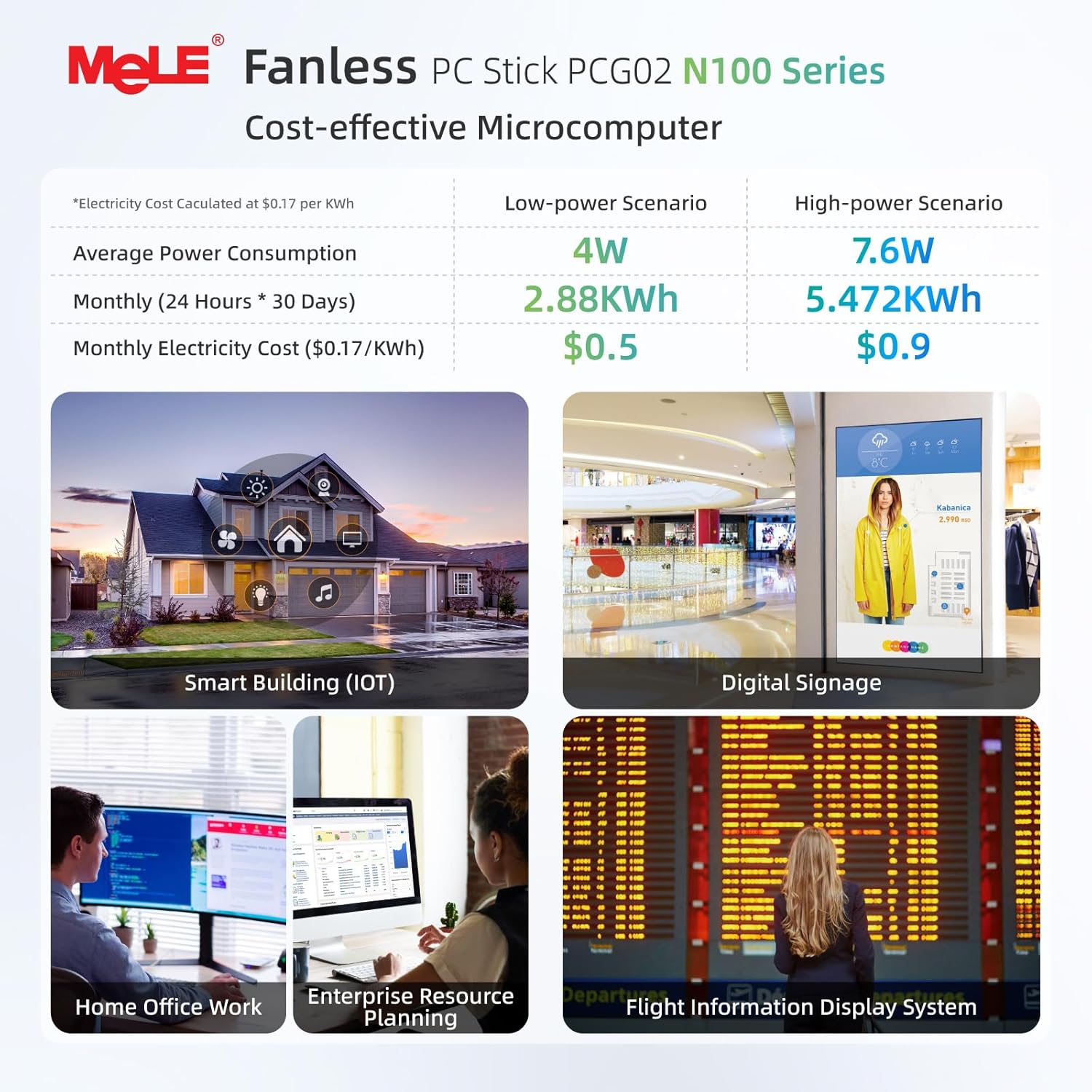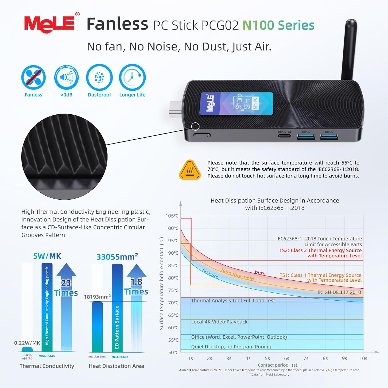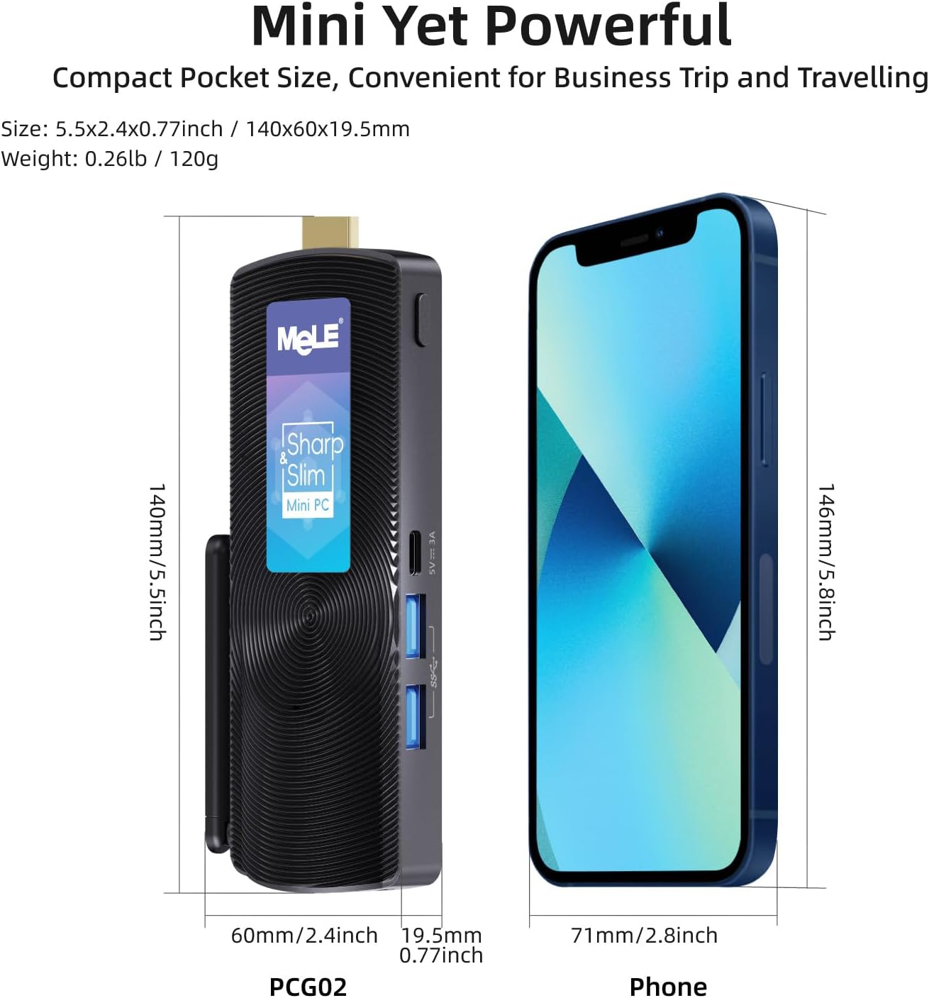 【Fanless & Ultra-Compact Design for 24/7 Operation】Its fanless cooling system enables silent, reliable 24/7 operation for MeLE winodows 11 pro fanless pc.The ultra-compact and sleek design (5.1x2.0x0.52 in, 0.26 lbs) eliminates clutter and allows for easy placement behind a TV or monitor. The N100 stick pc is perfect to operate quietly in digital signage, media, or office environments without overheating.