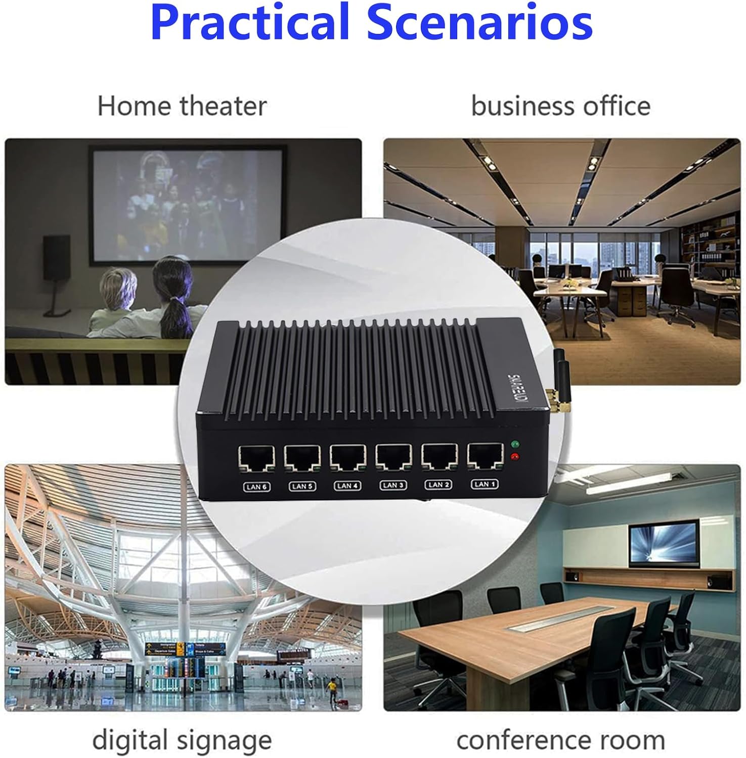 【6x Intel Ethernet Ports】The Firewall Micro Appliance has 6 * individual Intel 2.5GbE i226 ports, 2 * USB3.0 ports, 1 * VGA port, 1 * HD port, 1 * DC port. 6 Intel Gigabit Ethernet ports ensure a stable and fast network, software routing, and other network applications.