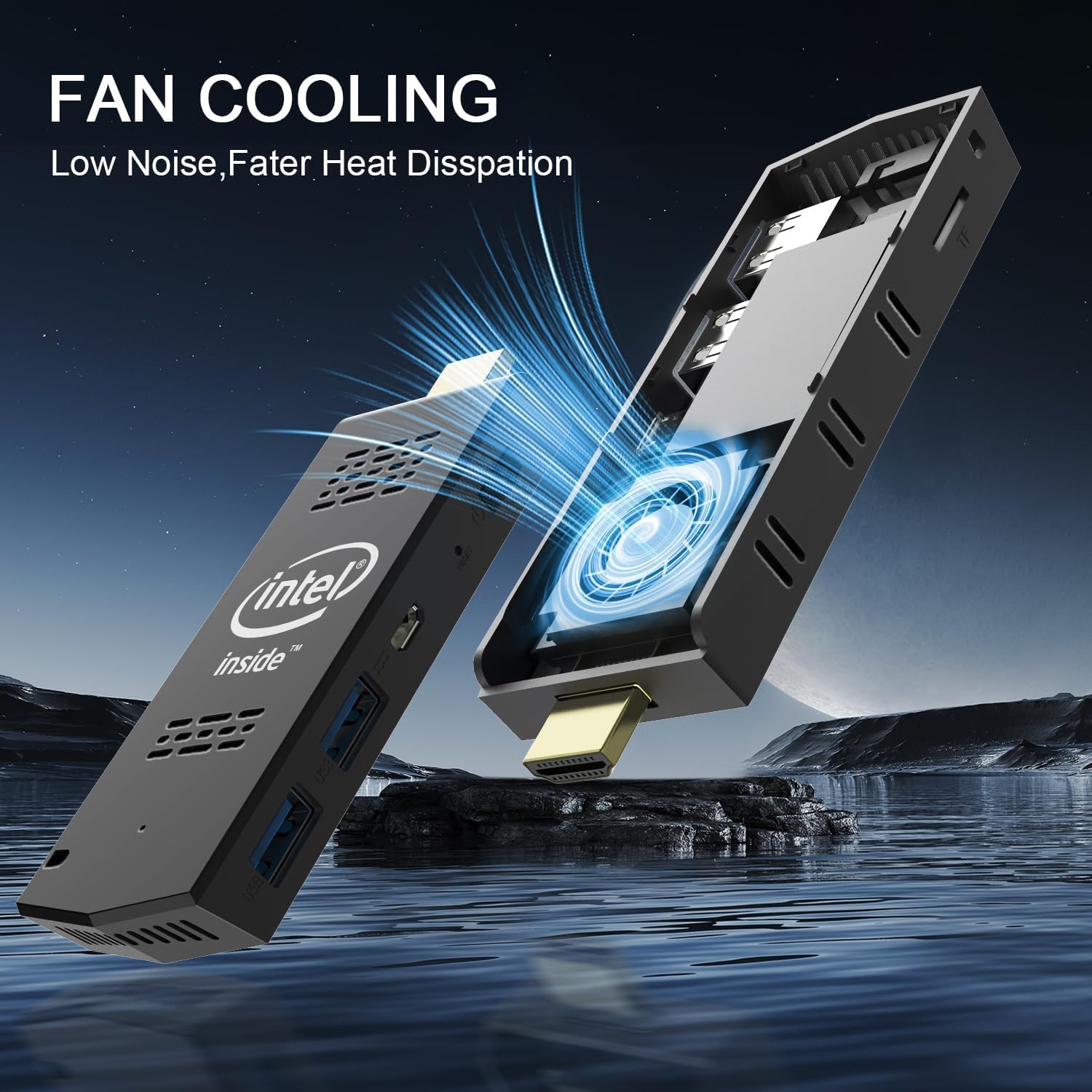 【EXCELLENT HEAT DISSIPATION 】This mini PC Stick has a built-in heat sink and a silent fan. Heat generated by the CPU is quickly transferred to the heat sink. The upgraded fan is quieter and stronger, blowing away hot air while drawing in cold air. Good heat dissipation will make the machine run more stable and reliable