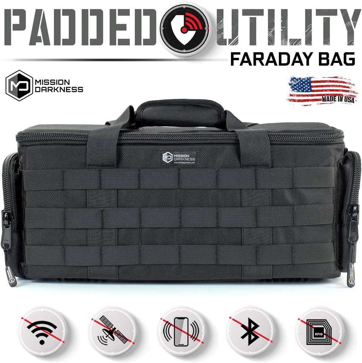 Mission Darkness Padded Utility Faraday Bag // Tactical Gear Bag with MOLLE Webbing and RF Signal Blocking Liner // Shields Delicate Electronics (Night Vision Goggles, Scopes, Cameras, Optics, Phones)