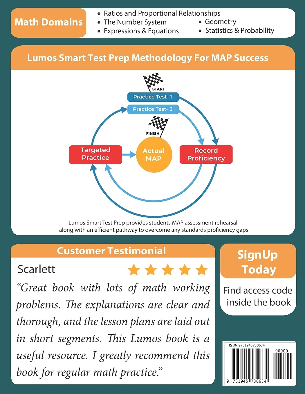 “This book is awesome—I’ve bought it two years in a row. We used it to study for the MAP Math in 5th grade and the MAP Math in 6th grade, and my child aced both tests with a score of 4. The online resources that come with the book are amazing. Kids can practice online tests and individual lessons as many times as they want.” — Jessenia