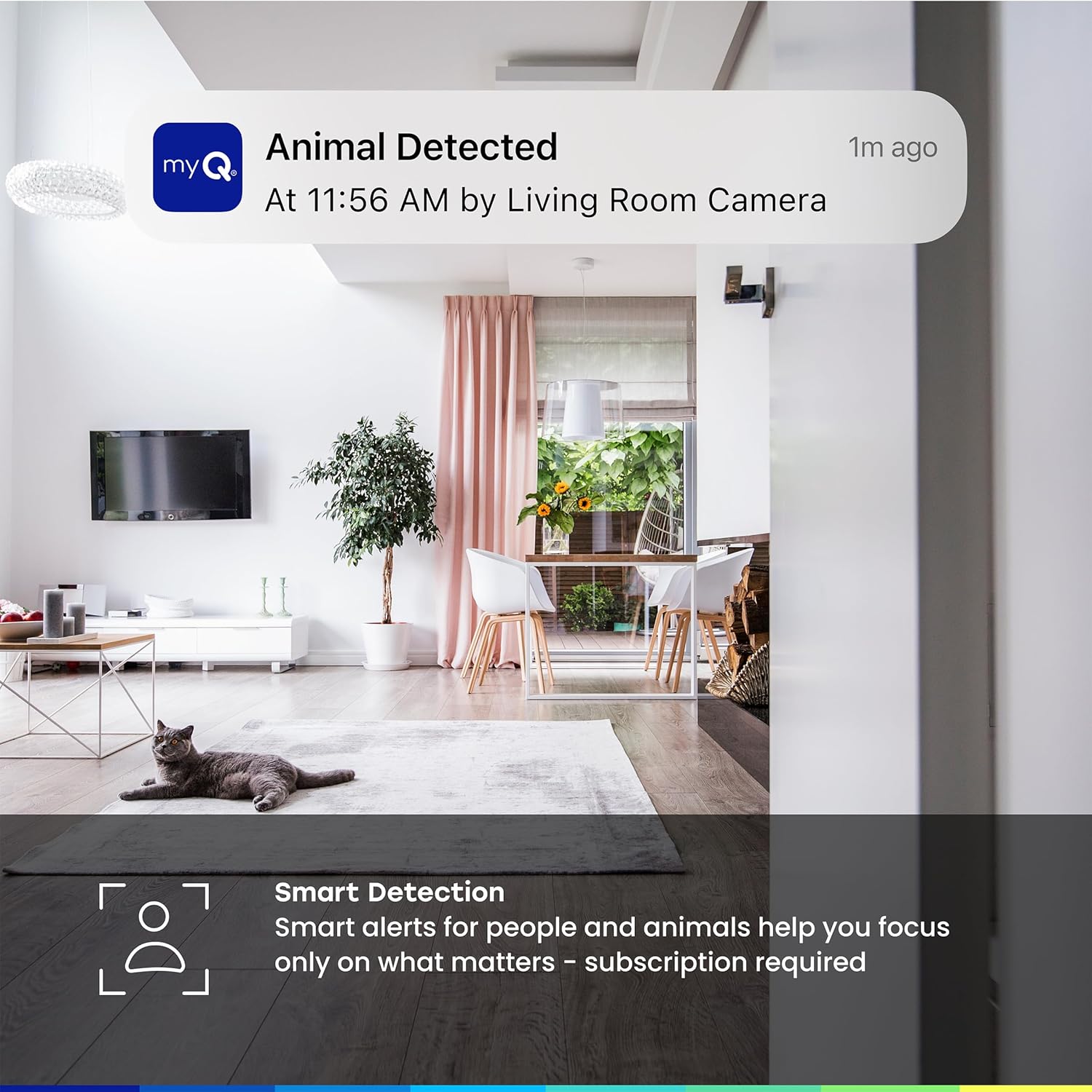 Motion Detection: Know what’s happening in real time. Get instant alerts when motion is detected—like your child getting out of bed after bedtime or unexpected movement inside your home while you’re away—so you can act fast through the myQ app.