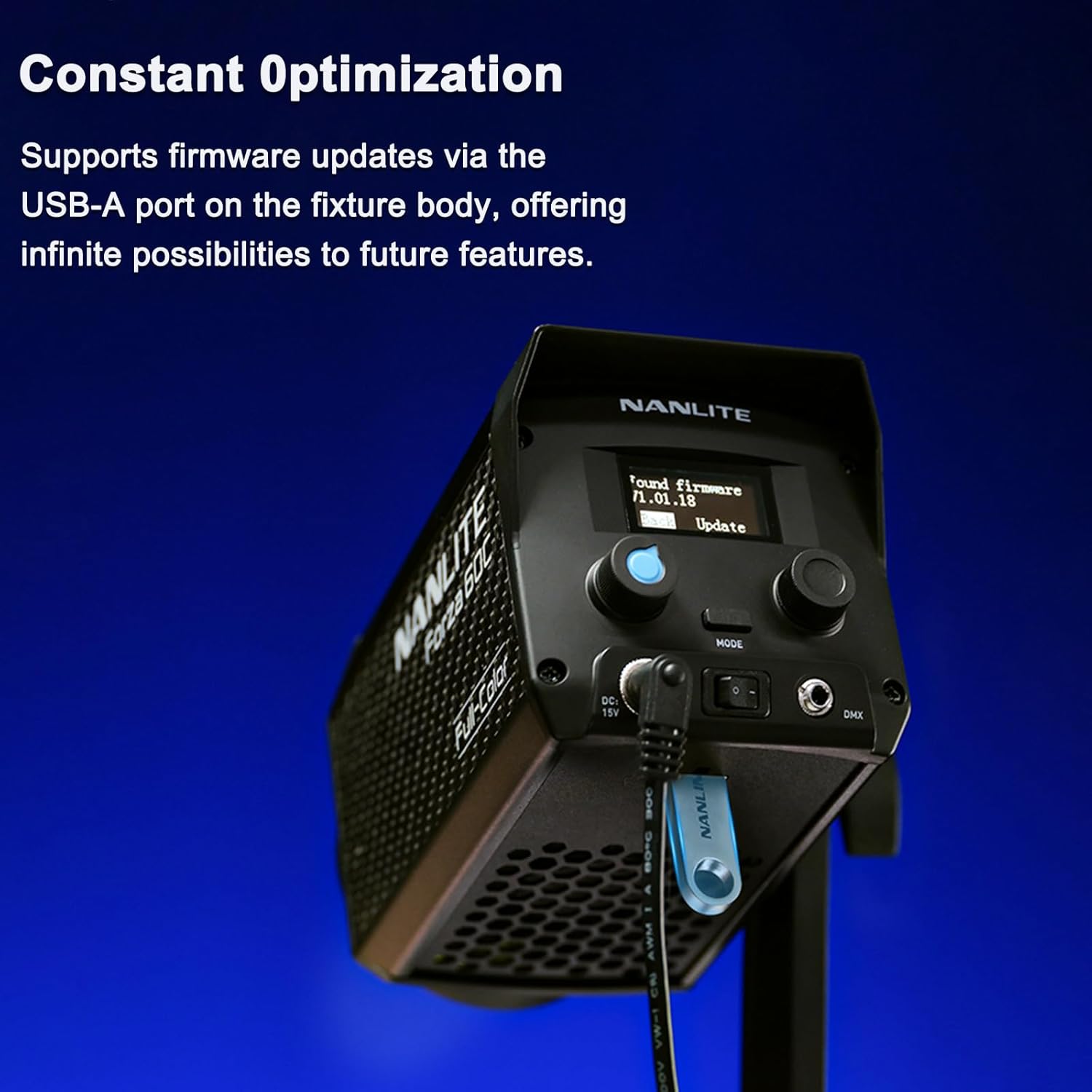 Unlock infinite possibilities in lighting effect withForza 60C's DMX/RDM control. An UsB port isincluded to supply power for wireless DMX receiver.