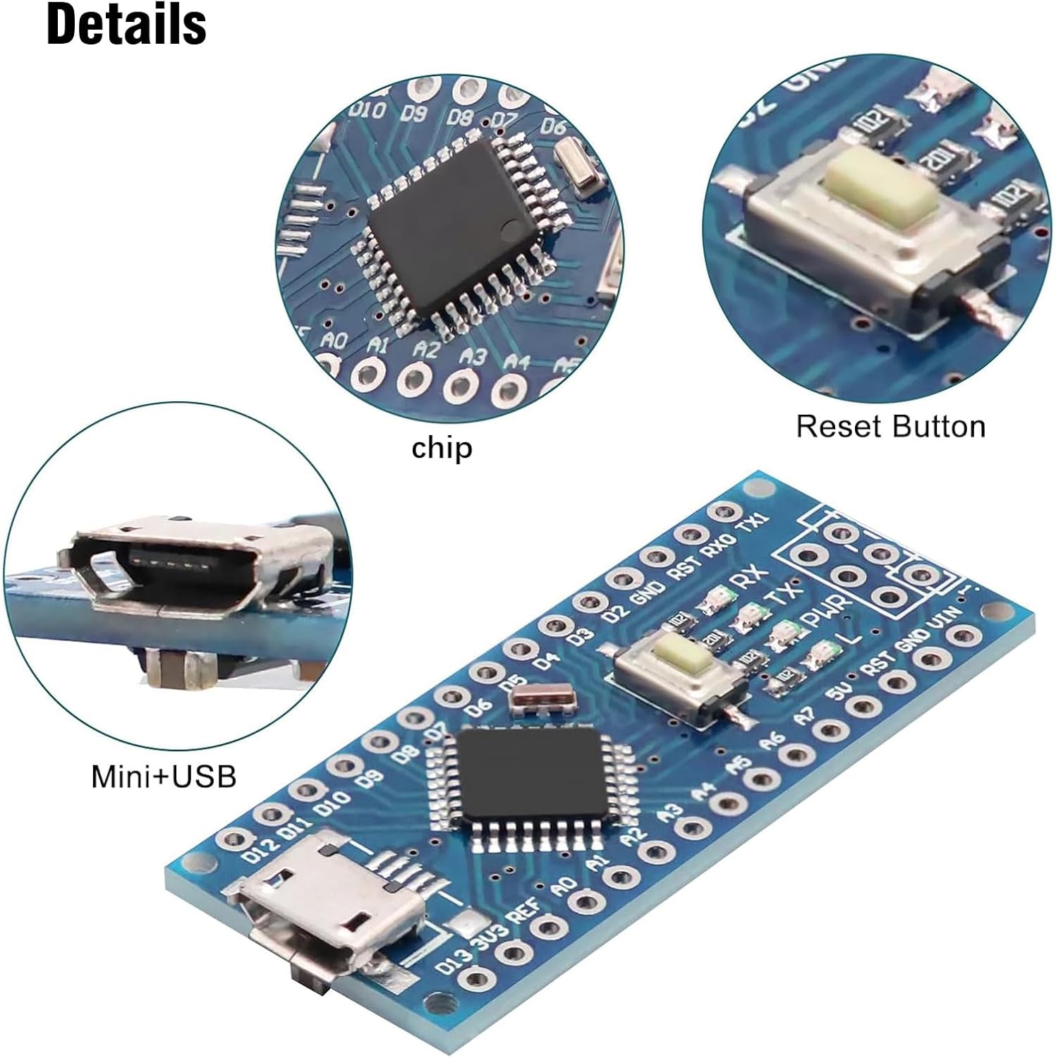 Uses atmega328p-AU as MCU, support ISP download; Support USB download and power supply. Compatible with Arduino Nano, fully compatible with Windows, Mac and Linux operating systems.