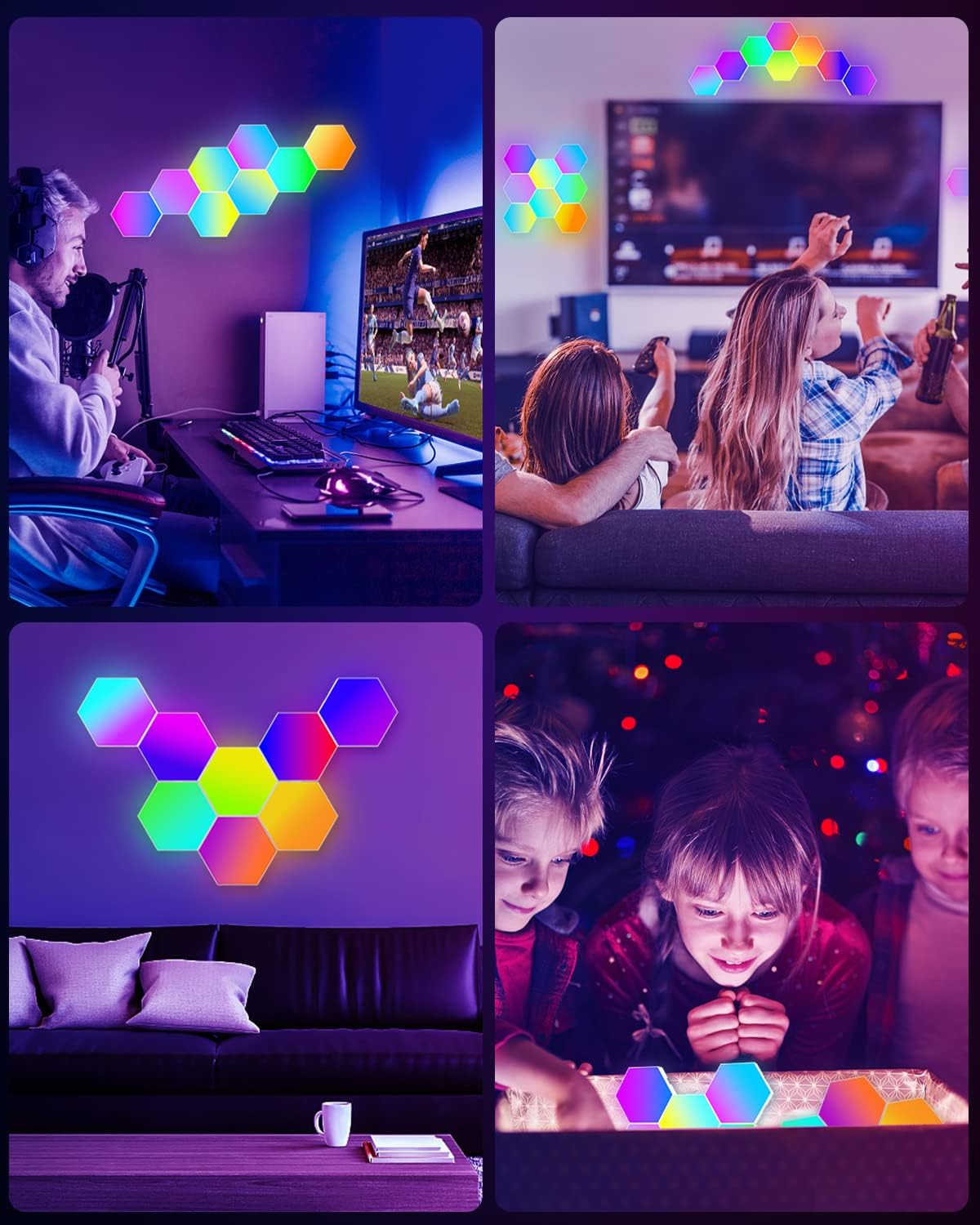 ✅【Customizable Design】Unleash your creativity by designing unique layouts with these Hexagon lights. Easily configure them into various shapes and mount them on the walls of your game room, bedroom, or living room. They serve as both functional lighting and stunning decorative pieces