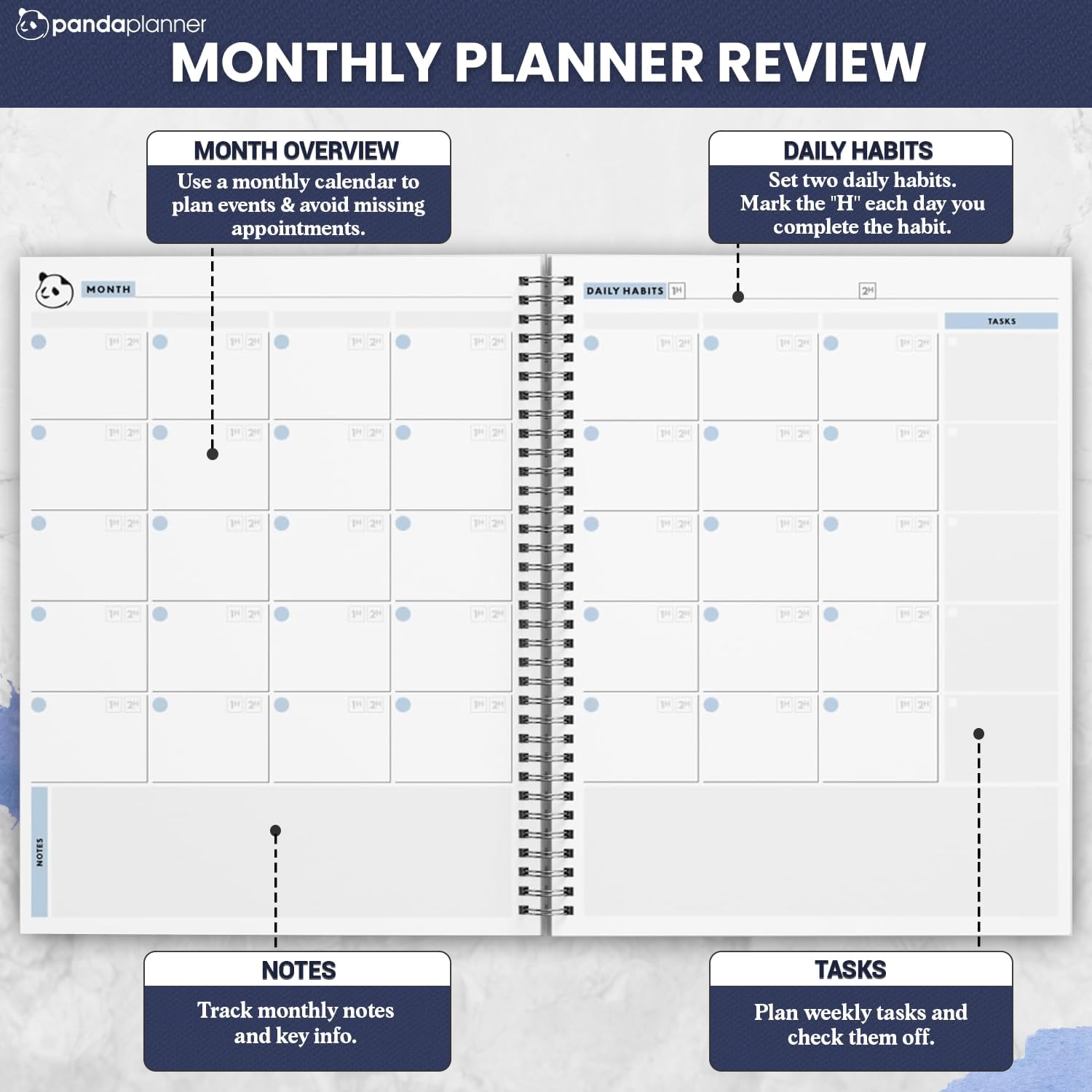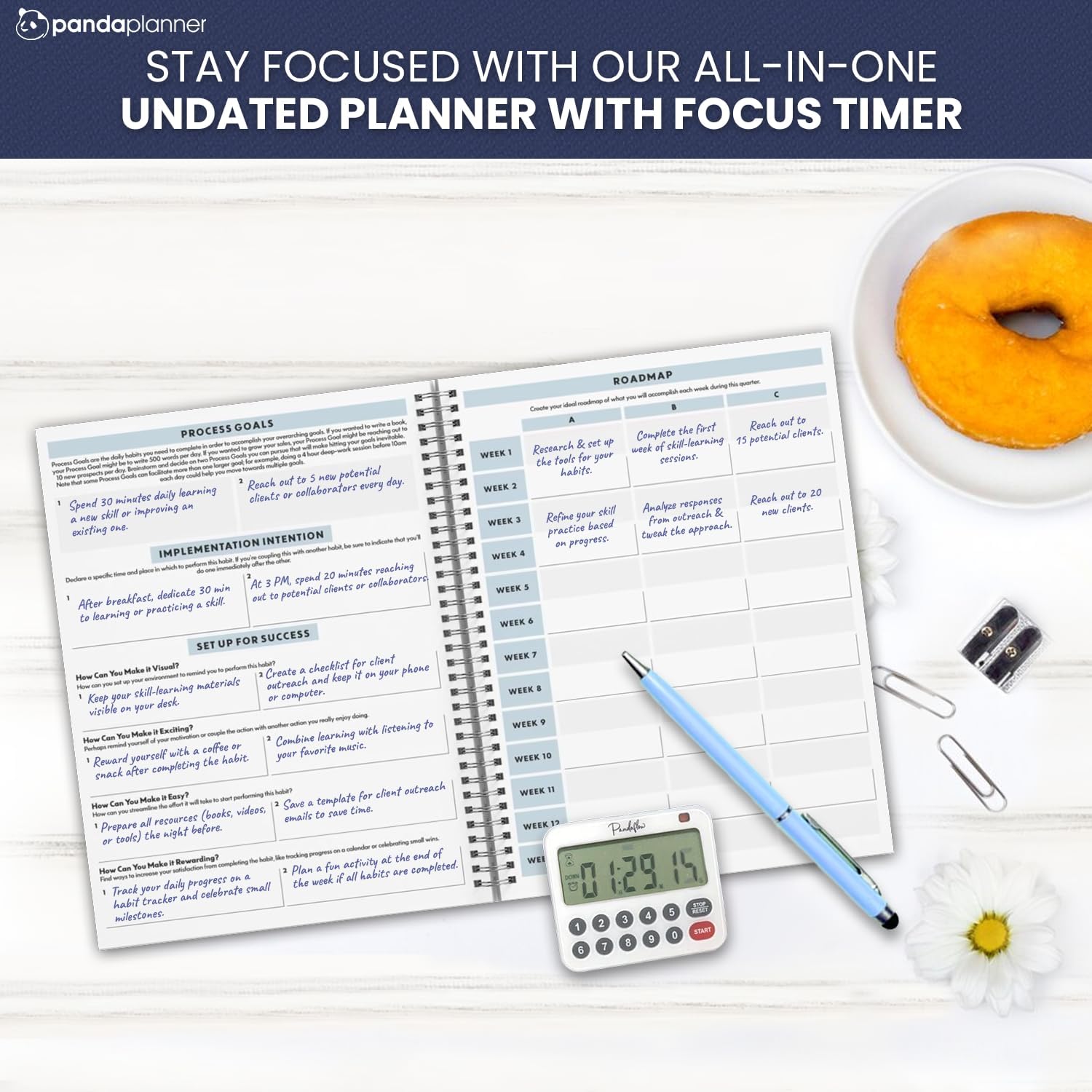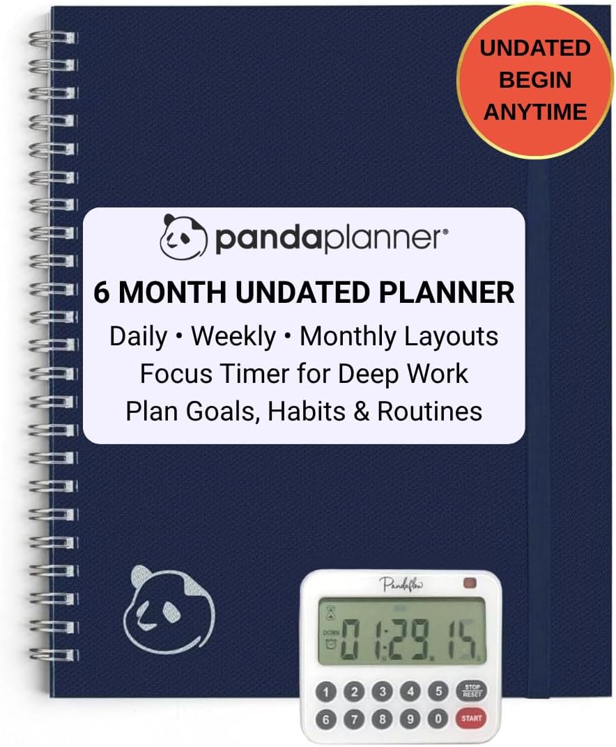 Panda Planner 2026 Ultimate Luxury 6-Month Undated Daily Planner with Focus Timer – Premium Spiral Bound Productivity & Academic Planner with Monthly, Weekly & Daily Layouts for Goal Setting, Habit Tracking, and Mental Clarity (Navy Linen)