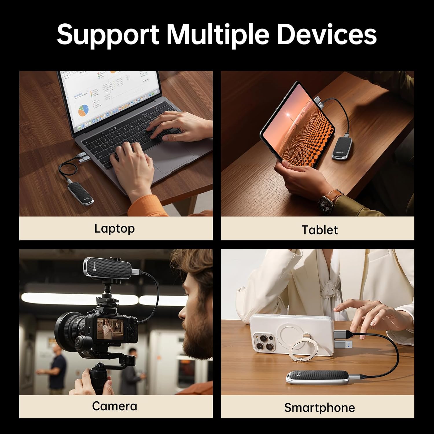 UNIVERSAL COMPATIBILITY, ZERO CONFIGURATION: Features a reversible Type-C interface and includes a high-quality 0.3m 2-in-1 USB C to USB C & USB A cable. Plug and play support for iPhone 15/16/17 Serie, Type C Android, Windows, Mac OS, Linux, with no drivers required. Perfectly for laptops, tablets, smartphones, cameras, gaming consoles and more.