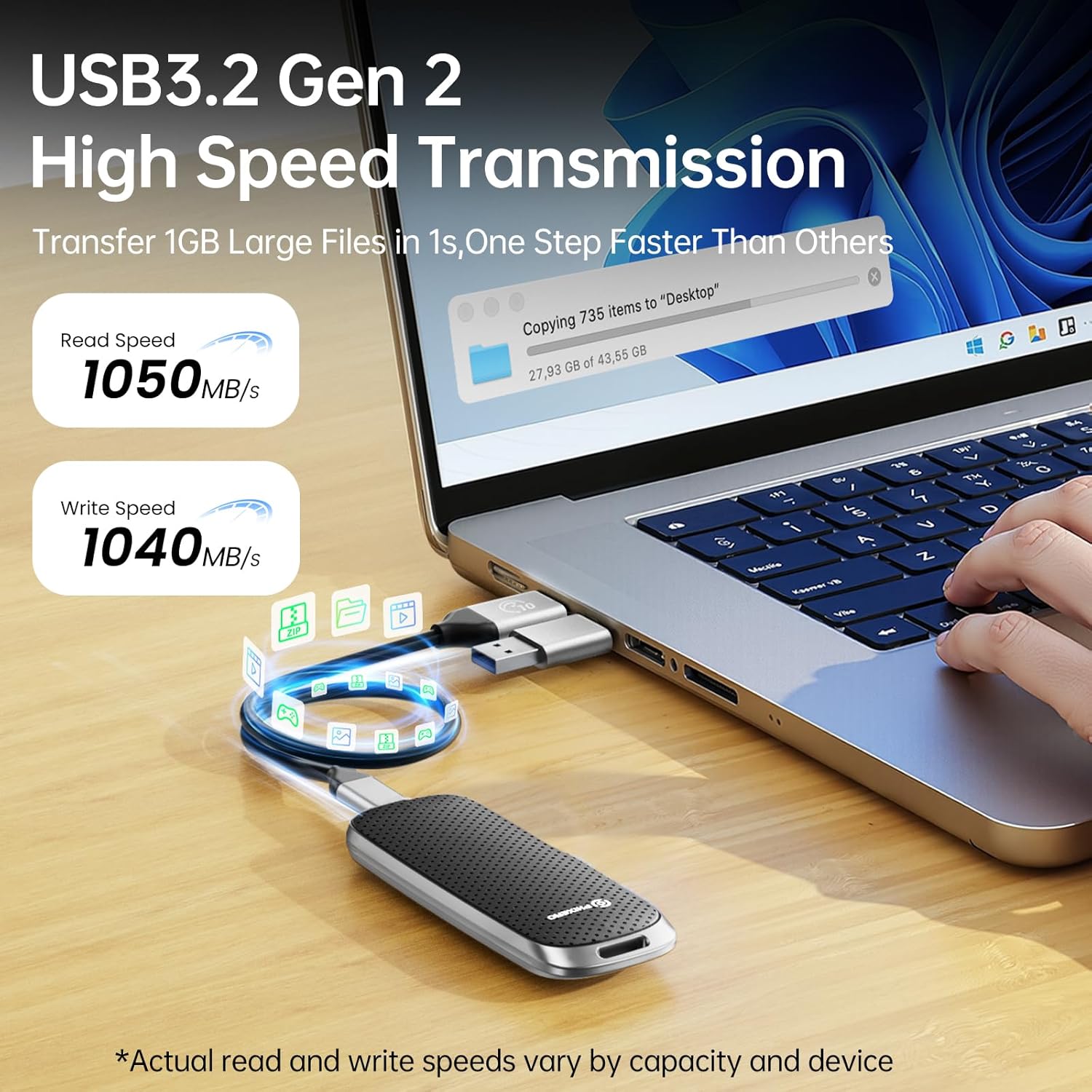 ULTRAFAST PERFORMANCE, INSTANT TRANSFERS: Equipped with USB 3.2 Gen2 interface, this P10PRO External NVMe SSD 2TB supports up to 10Gbps high speed data transmission, achieving real world read speeds up to 1050MB/s and write speeds up to 1040MB/s. Transfer 1GB of data in just one second, ideal for 4K video editing, game libraries and large business files, dramatically improving work efficiency.