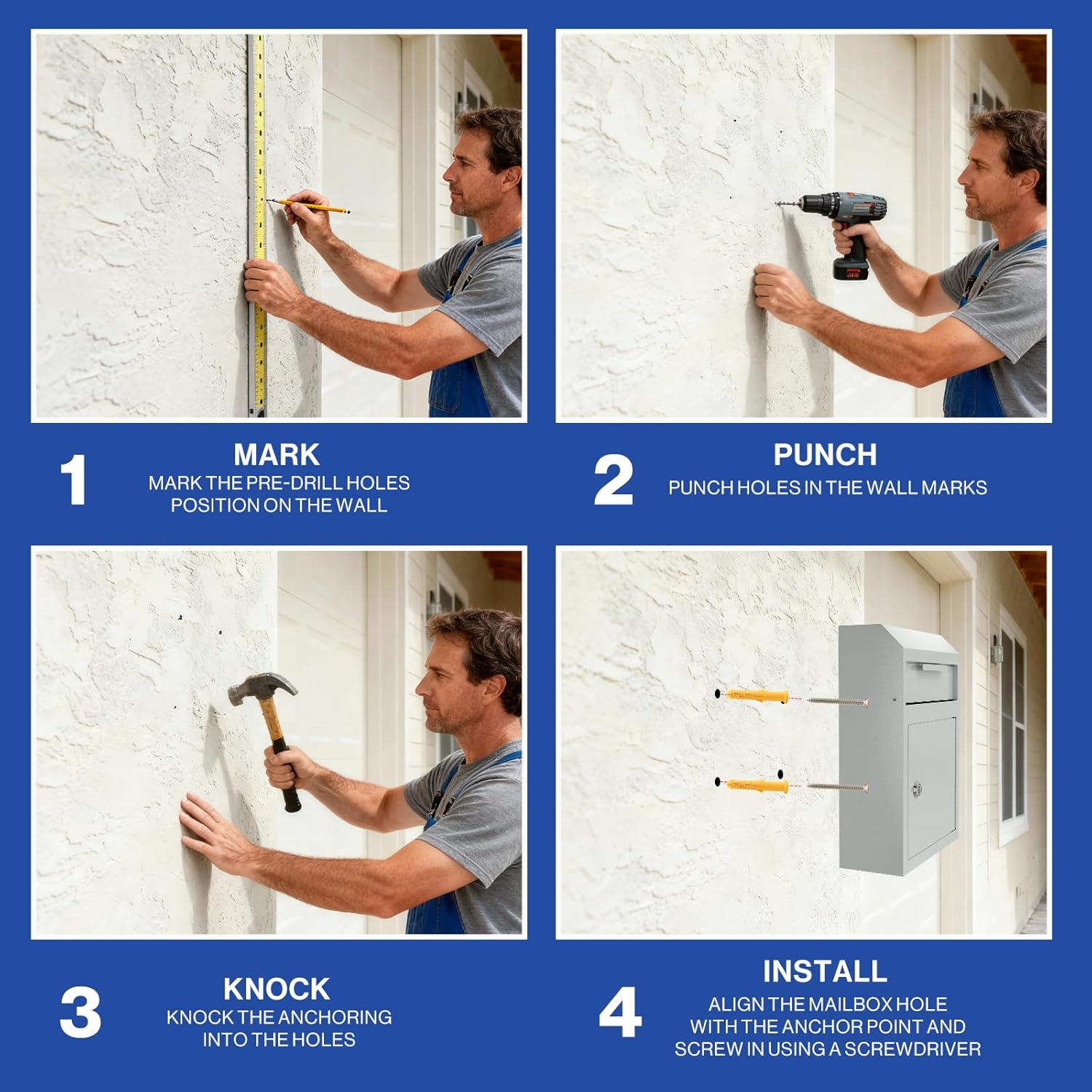 🔑EASY TO INSTALL: Our wall mount drop box is equipped with pre-drilling holes and hardware for easy installation. Installation is complete in only 4 steps. Whether it is installation steps or consult other mailbox models, our team at California is here to assist you anytime.