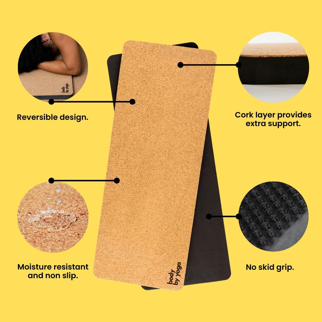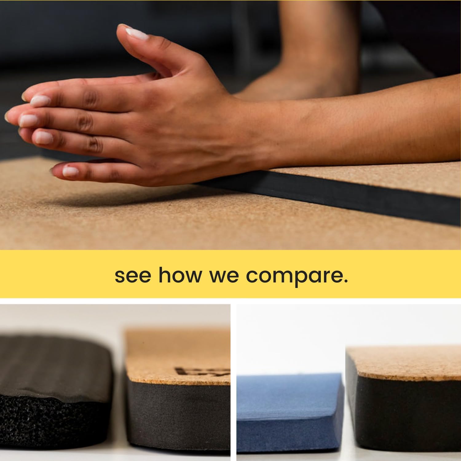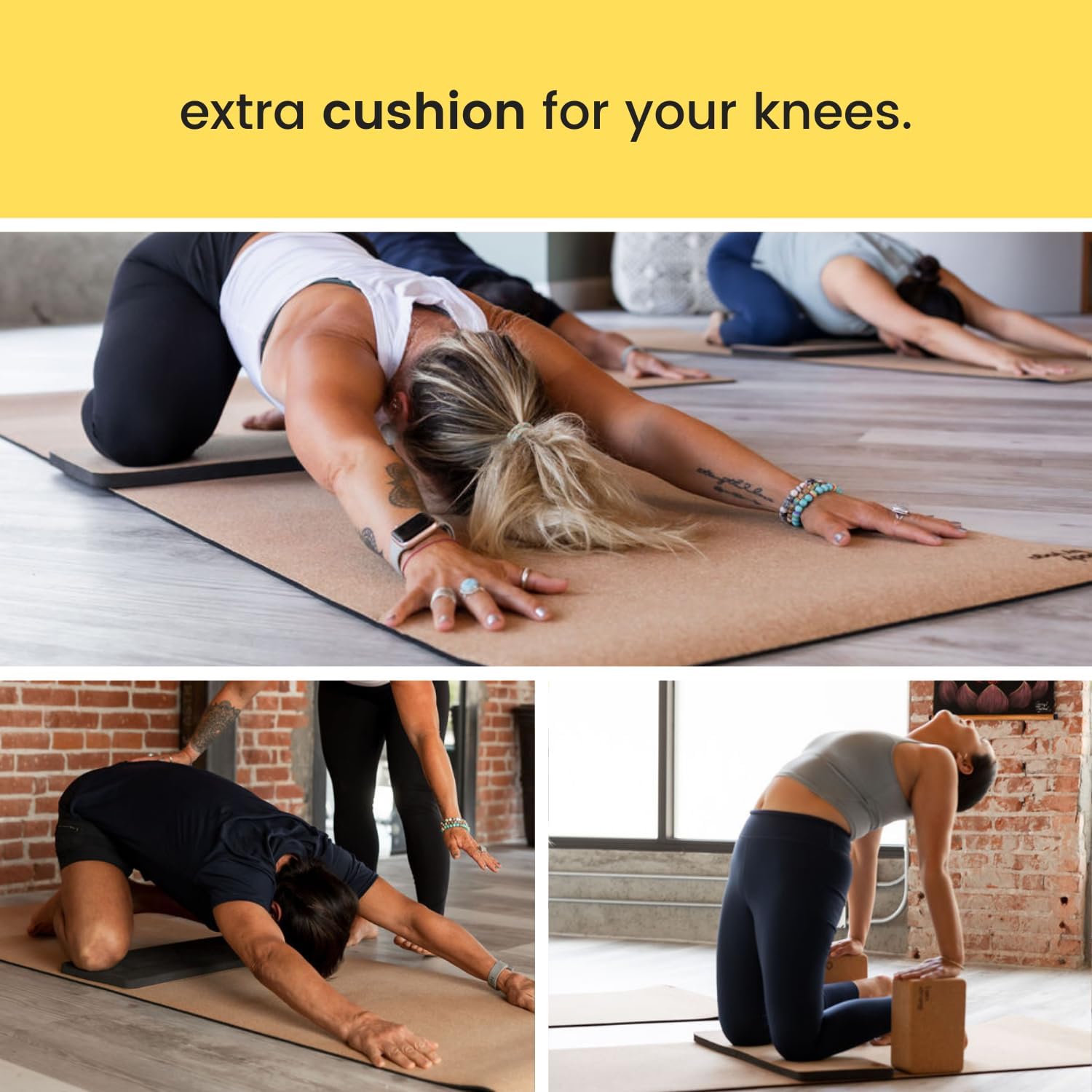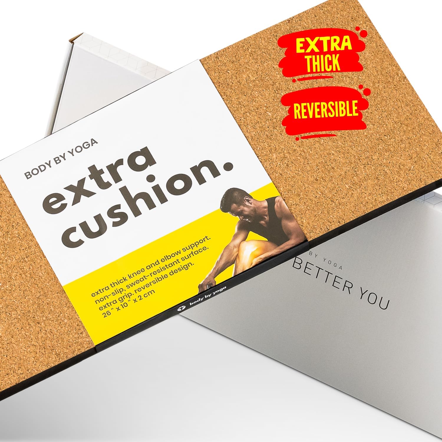 Protect your knees, elbows, and wrists with the Body By Yoga Knee Pad Cushion — a premium, instructor-designed yoga accessory made for comfort and stability. Thicker than most yoga knee pads, our 0.84-inch extra thick yoga mat cushion provides targeted joint support without sacrificing balance. Crafted from high-density TPE and natural Portuguese cork, this reversible, non-slip pad offers the perfect blend of comfort, durability, and grip. The cork side adds firmness and grounding, while the TPE side provides soft, supportive cushioning. Unlike standard NBR foam pads that easily compress or tear, our performance-grade TPE maintains its shape and resilience through years of practice. Ideal for yoga, Pilates, stretching, or floor exercises, this extra wide knee pad comfortably supports both knees or elbows at once. Its sweat-resistant and odor-resistant surfaces wipe clean easily, making it perfect for hot yoga or outdoor sessions. Each cushion ships flat, not rolled, so it stays perfectly flat from day one - no curling or break-in period required. Thoughtfully engineered by yoga instructors, the Body By Yoga knee pad cushion offers the comfort of an extra thick yoga mat without the bulk, helping you practice safely, comfortably, and with confidence.