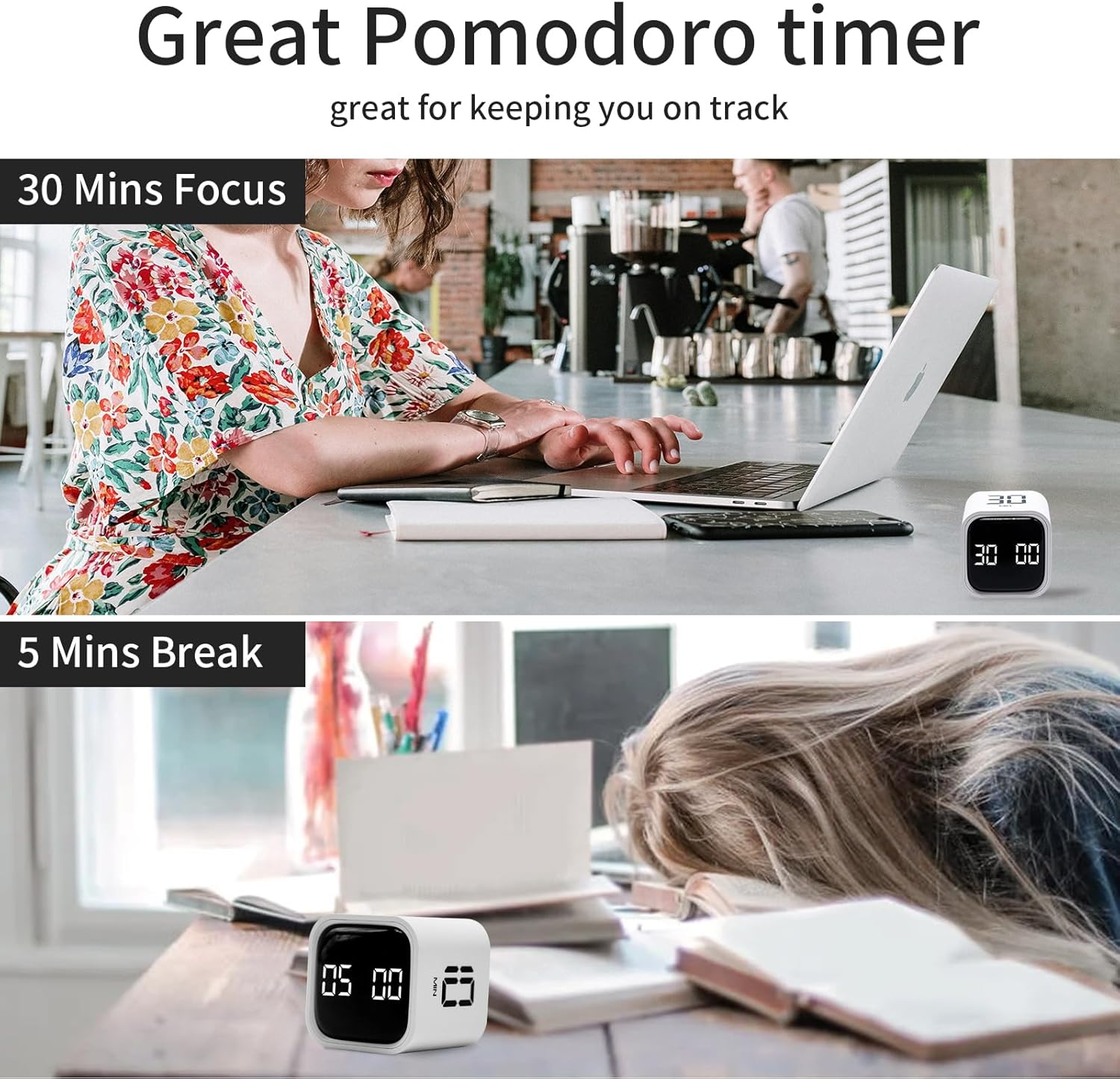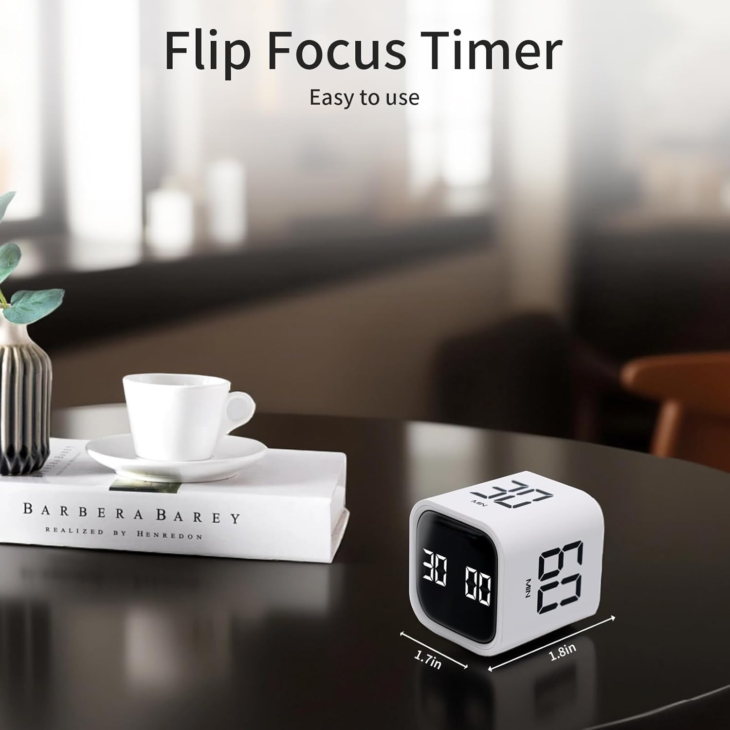 Productivity Timer Flip Gravity Sensor Cube Timer Countdown & Countup,Mute & Vibrate & Sound,5/10/30/60min & Custom Timing, Perfect for ADHD,Work,Learning,Kitchen Cooking (1White)