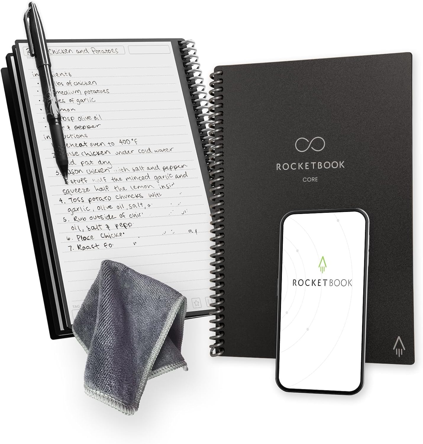 Experience the ultimate in reusable note-taking with the Rocketbook Core Lined Notebook. Designed for students, working professionals, and creatives, this notebook blends the traditional feel of a spiral notebook with app-enabled features for an efficient and organized writing experience. It's the ideal gift for college students, teachers, co-workers, parents, and anyone who values organized note-taking. Enjoy more productivity and less waste! Transform your note-taking experience with the Rocketbook Core Lined Notebook – the smart and stylish choice for organized and efficient note-taking. Ideal for gift-giving to college students, teachers, co-workers, parents, and anyone looking for a high-quality, app-enabled notebook. Perfect as a back-to-school notebook or for any professional setting, this narrow lined ruled journal is perfect for creating organized lists and maintaining your thoughts efficiently. Whether you're taking lecture notes, drafting business plans, or journaling your thoughts, this notebook adapts to any need. Its clean, professional appearance makes it suitable for school, work, or personal use. It’s a perfect back-to-school essential and makes a thoughtful gift for any occasion. Ideal as a notebook for men and women, college students, working professionals, or anyone who likes to write or draw. This lined Notebook fits easily into backpacks, purses, or briefcases, making it the ideal portable notebook for any setting. This one-subject notebook is perfect for schoolwork, in and out of the classroom, or business notes. The college-ruled pages are ideal for note-taking and organizing notes, making it a staple for work and school. Use it for work notes, class notes, sketches, to-do lists, and more. Overall, Rocketbook notebooks encourage creativity and enhance productivity, making them perfect for any project or task.