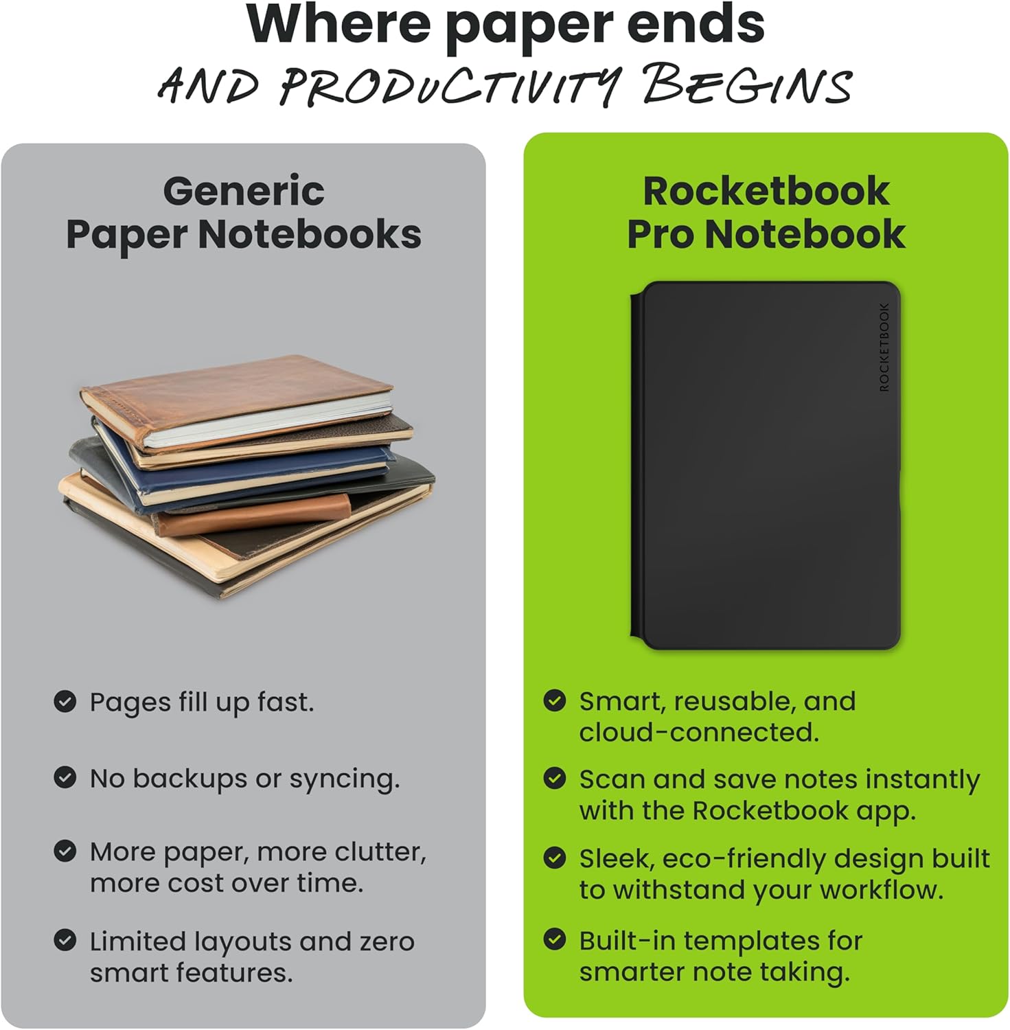 Endless Productivity: Reduce paper clutter and keep your workspace tidy with a reusable notebook designed to simplify your workflow. Launch ideas into action as you jot down notes, track goals, and save creative concepts—again and again!