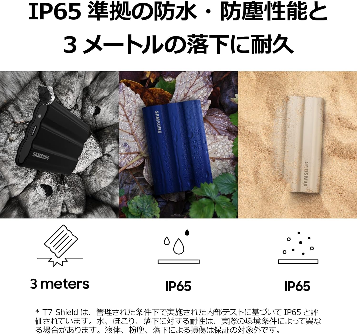 Extremely tough, fast and compact. The Samsung Portable SSD T7 Shield provides superior performance in harsh environments. Ultra-fast external SSD with durability and security features make your daily work and data transmission comfortable.