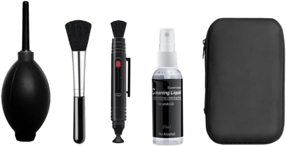 Deluxe Dust BlowerDust Cleaning BrushLens Cleaning PenLens Cleaning SolutionCase for Deluxe Cleaning Kit