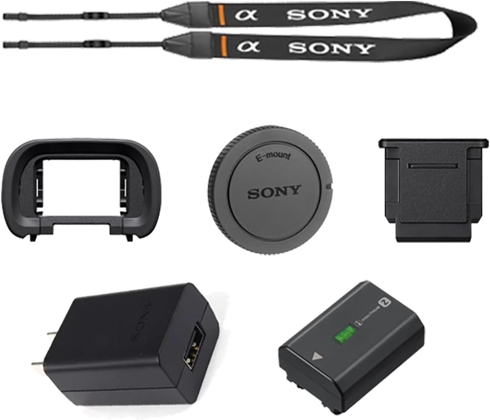 E-Mount Body CapSony NP-FZ100 BatteryEyecup | Accessory Shoe CapUSB AC AdapterSony Camera Strap