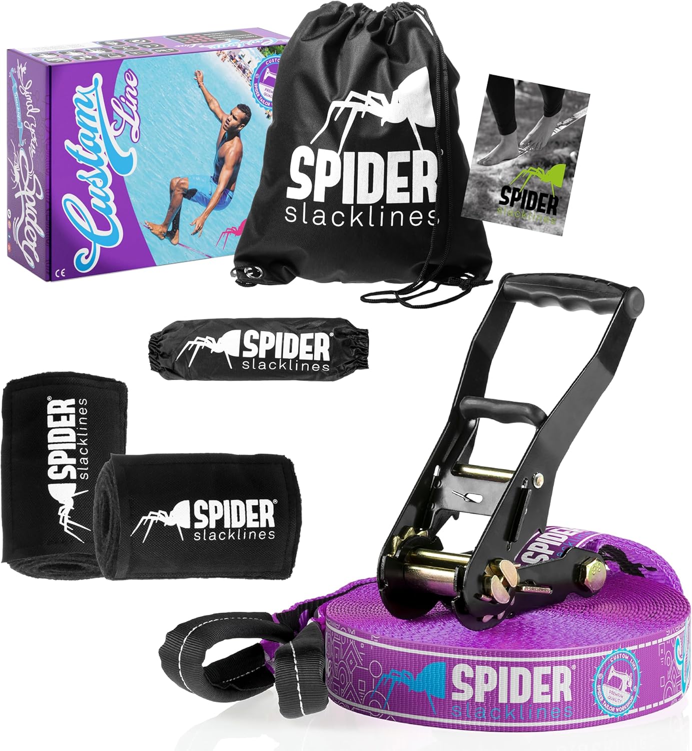 Spider Slacklines - Custom Slackline Kit for Experienced slackliners or Those New to Balancing - Complete Set of Webbing Length 20m with 1x Ratchet