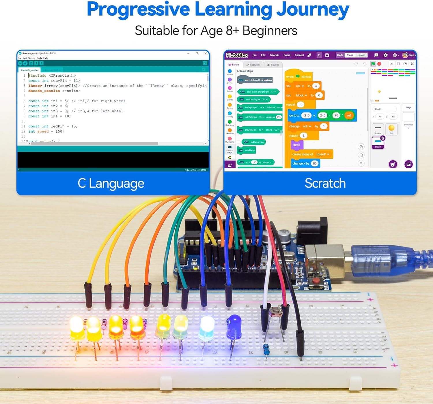 Progressive Learning Journey: With Circuit Basics, the courses cater to your skill level, covering essentials and advancing to complex topics like IoT, robot cars, and sensor integration.