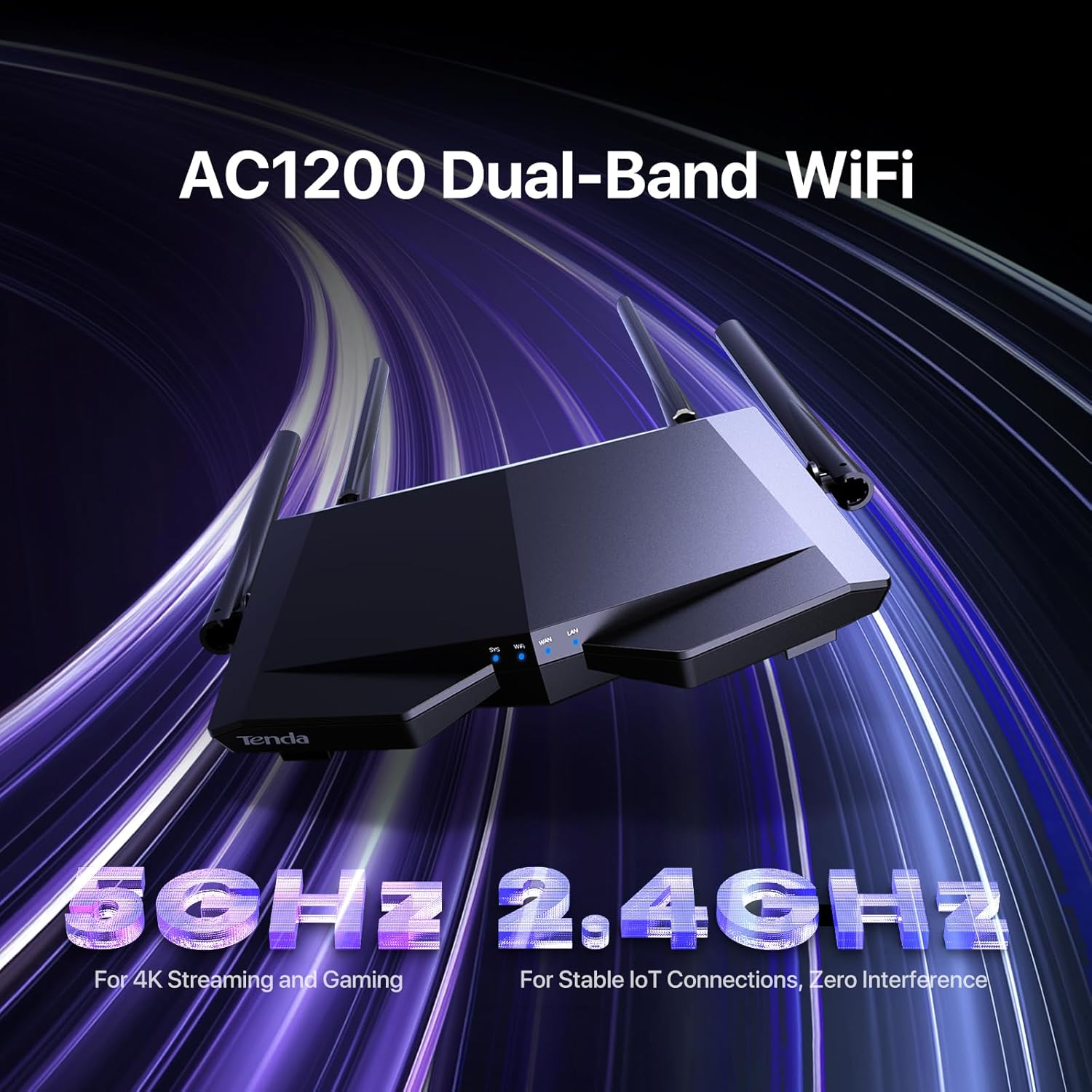 Tenda AC1200 Smart WiFi Router, High Speed Dual Band Wireless Internet Router with Smart APP, 4 x 100 Mbps Fast Ethernet Ports, Supports Guest WiFi, Access Point Mode, IPv6 and Parental Controls(AC6)