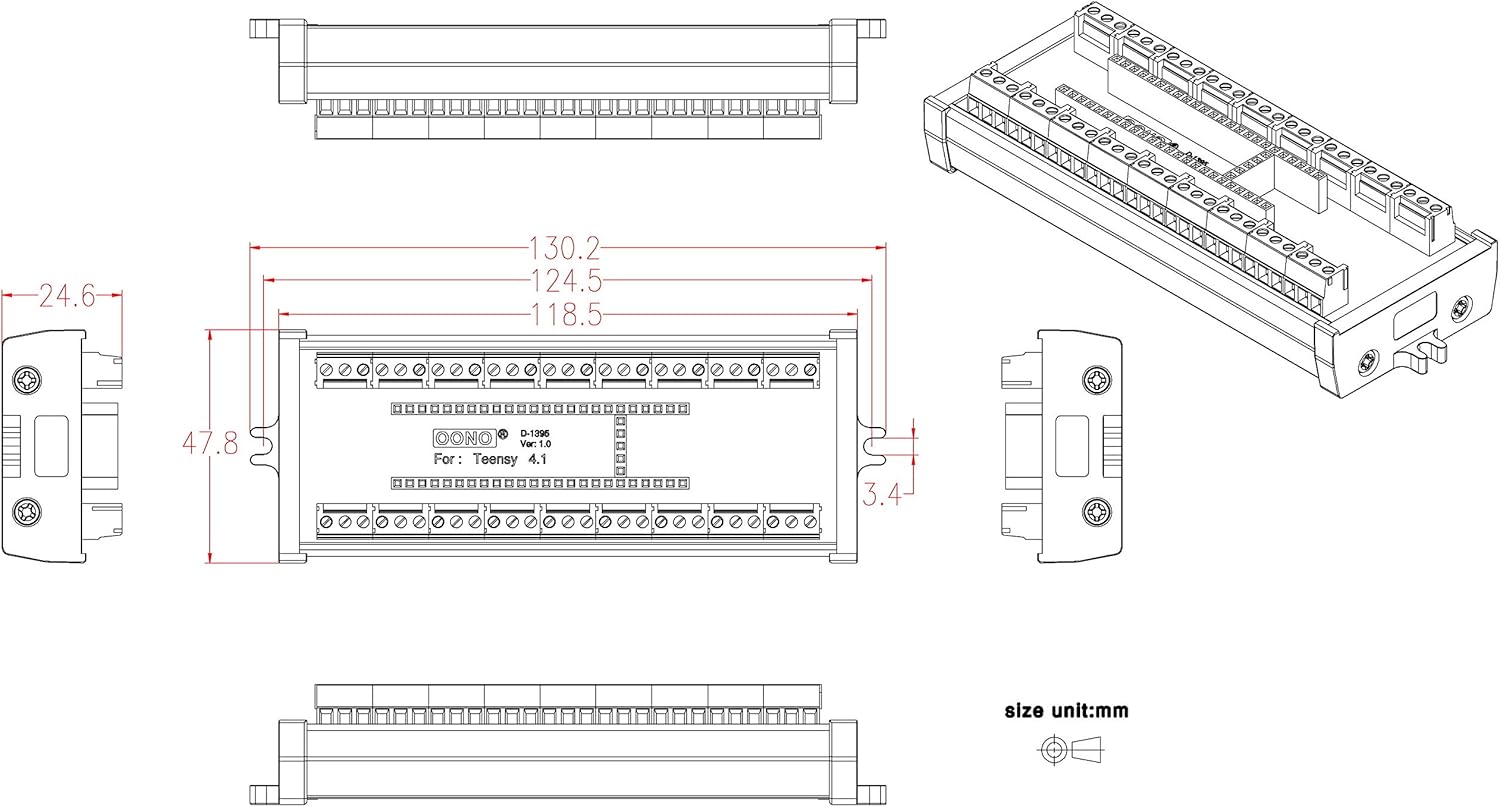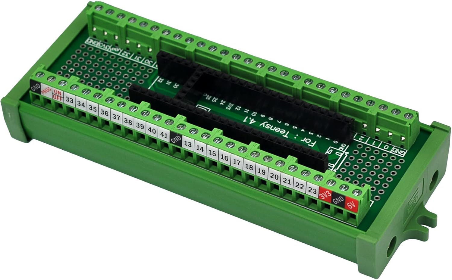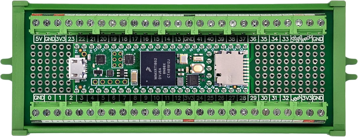 Terminal Block Breakout Board Module for Teensy 4.1, Screw Mount Version. With the breakout board, you can easily extend Teensy 4.1 projects to industrial control, home automation or other applications.