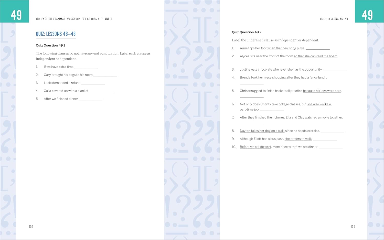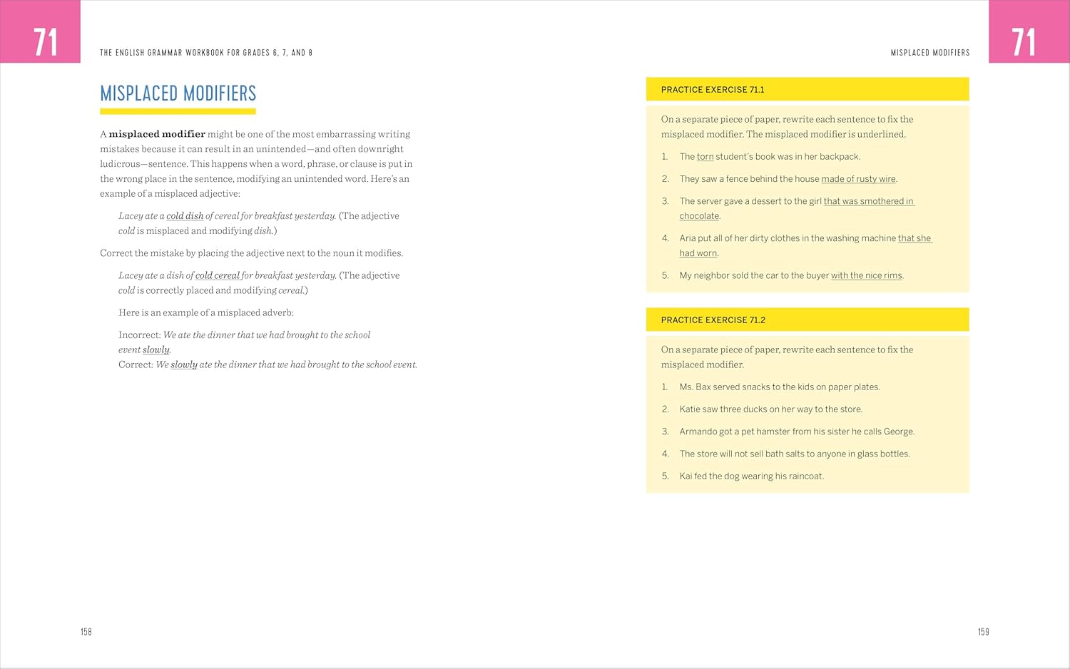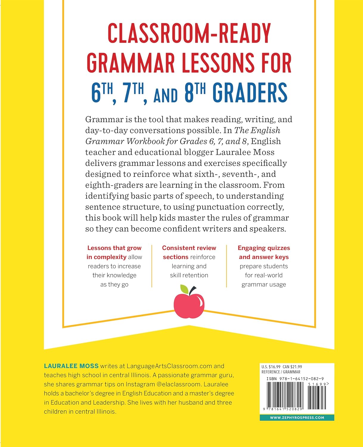 Grammar is an essential part of the sixth, seventh, and eighth grade curriculum. With The English Grammar Workbook for Grades 6, 7, and 8, students will build a strong foundation for understanding the concepts of grammar and using them effectively when reading, writing, or speaking.