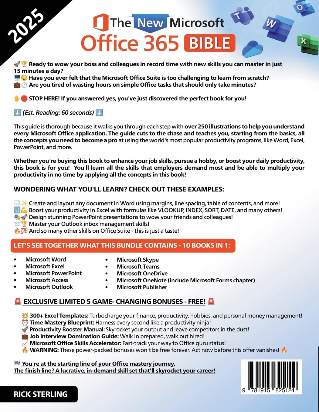 The New Microsoft Office 365 Bible: Achieve Mastery in Just 15 Minutes a Day – Illustrated Guide with Secret Tips and Shortcuts to Excel, Word, PowerPoint, and Impress Your Boss and Colleagues