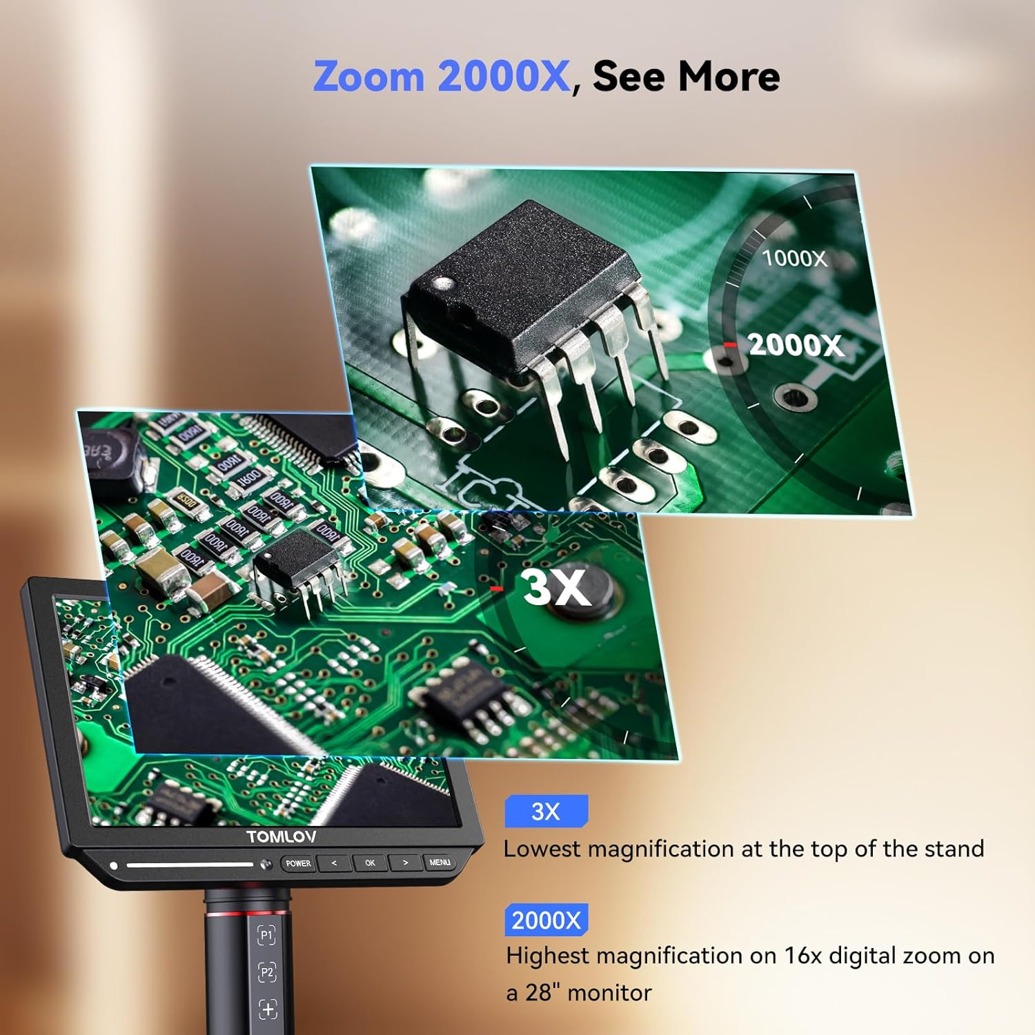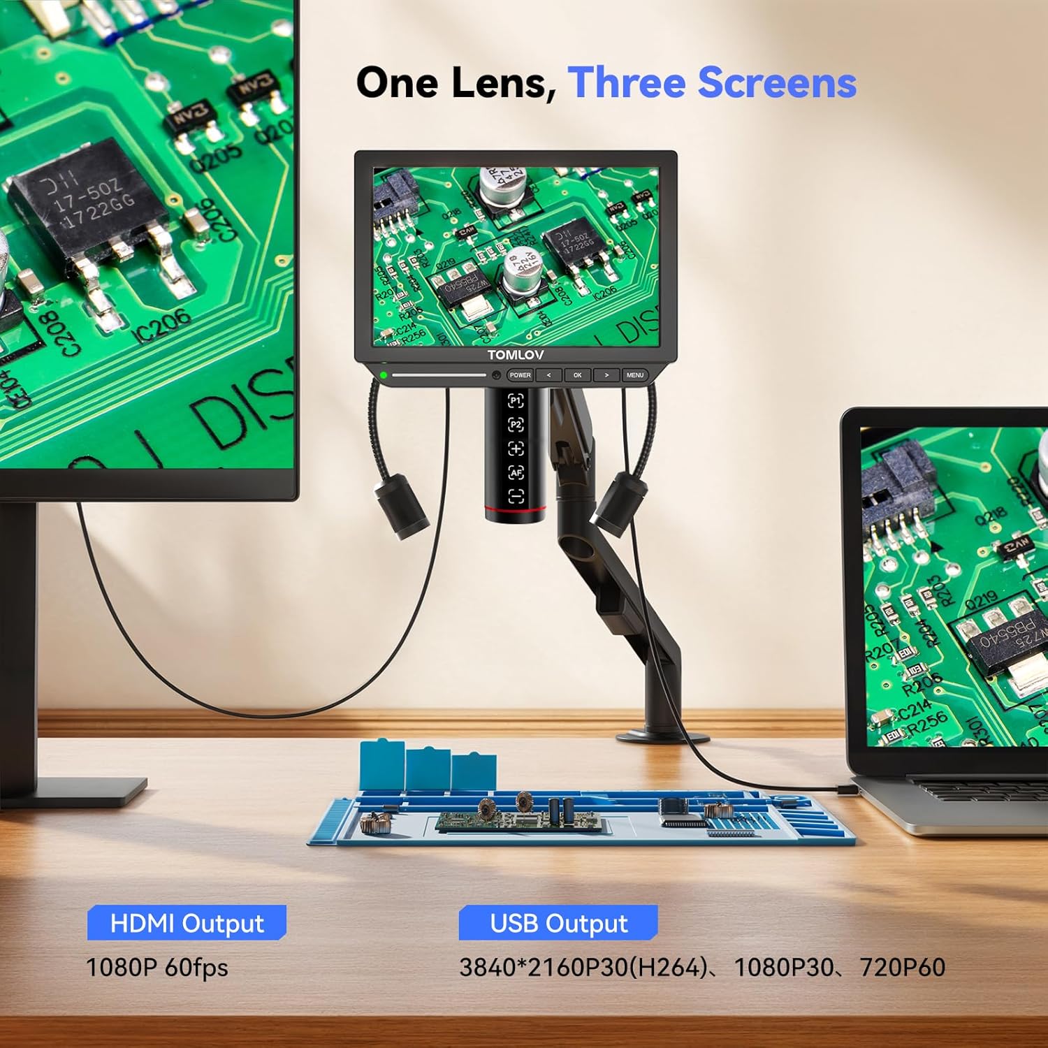 3 Screen Real-Time HDMI Microscope: Enhance your work with TOMLOV's tri-screen display; Simultaneous HDMI/USB output provides a detailed view across multiple screens, ideal for labs, repairs, and education, ensuring precise monitoring and boosted productivity
