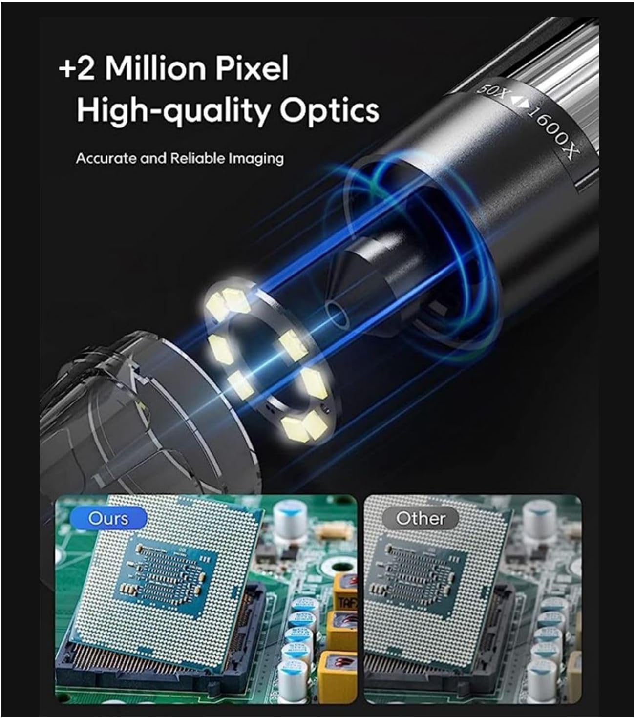 Experience Upgraded 50X-1600X Digital Magnification in Your Hand: Capture stunning details with our +2MP camera, delivering 1920x1440P HD images and videos. Effortlessly explore the microscopic world of plants, coins, welding, and more, illuminated by 8 adjustable LEDs for clear views even in low light