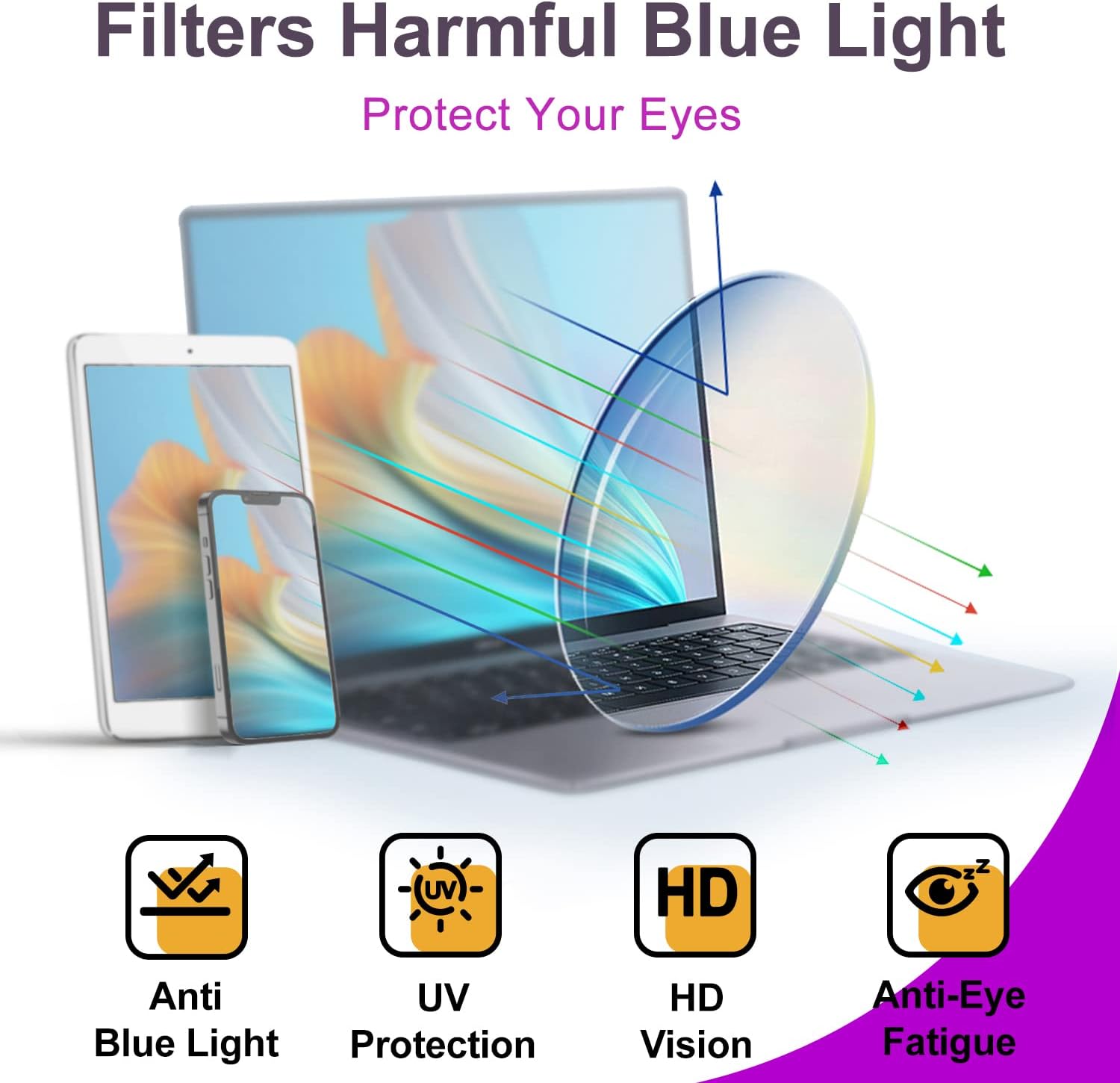 【Function】: Blue light Blocking Glasses is an efficiently capable of preventing visual fatigue, eyestrain and discomfort from continuous exposure to 99% harmful blue light and UV400.