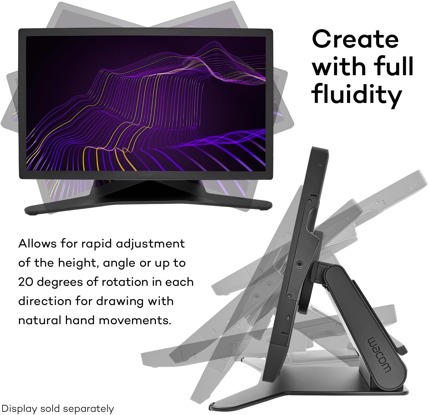 The Wacom Cintiq Pro 27 Stand is designed specifically to bring maximum comfort, flexibility and stability to any desktop studio or remote workspace and allows for rapid adjustment of the height, angle or up to 20 degrees of rotation in each direction for drawing with natural hand movements.