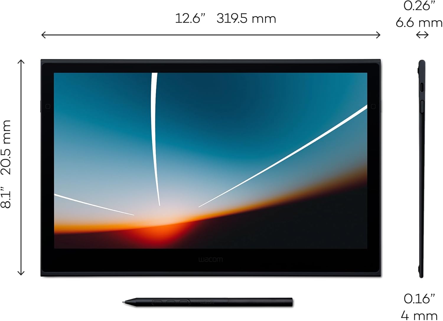 Thin, Lightweight Display: Wacom drawing tablet features OLED display, weighs less than 1 lb. and measures 4-6.6mm thick; Compact digital art tablet ideal for use on campus, in the studio, or at home