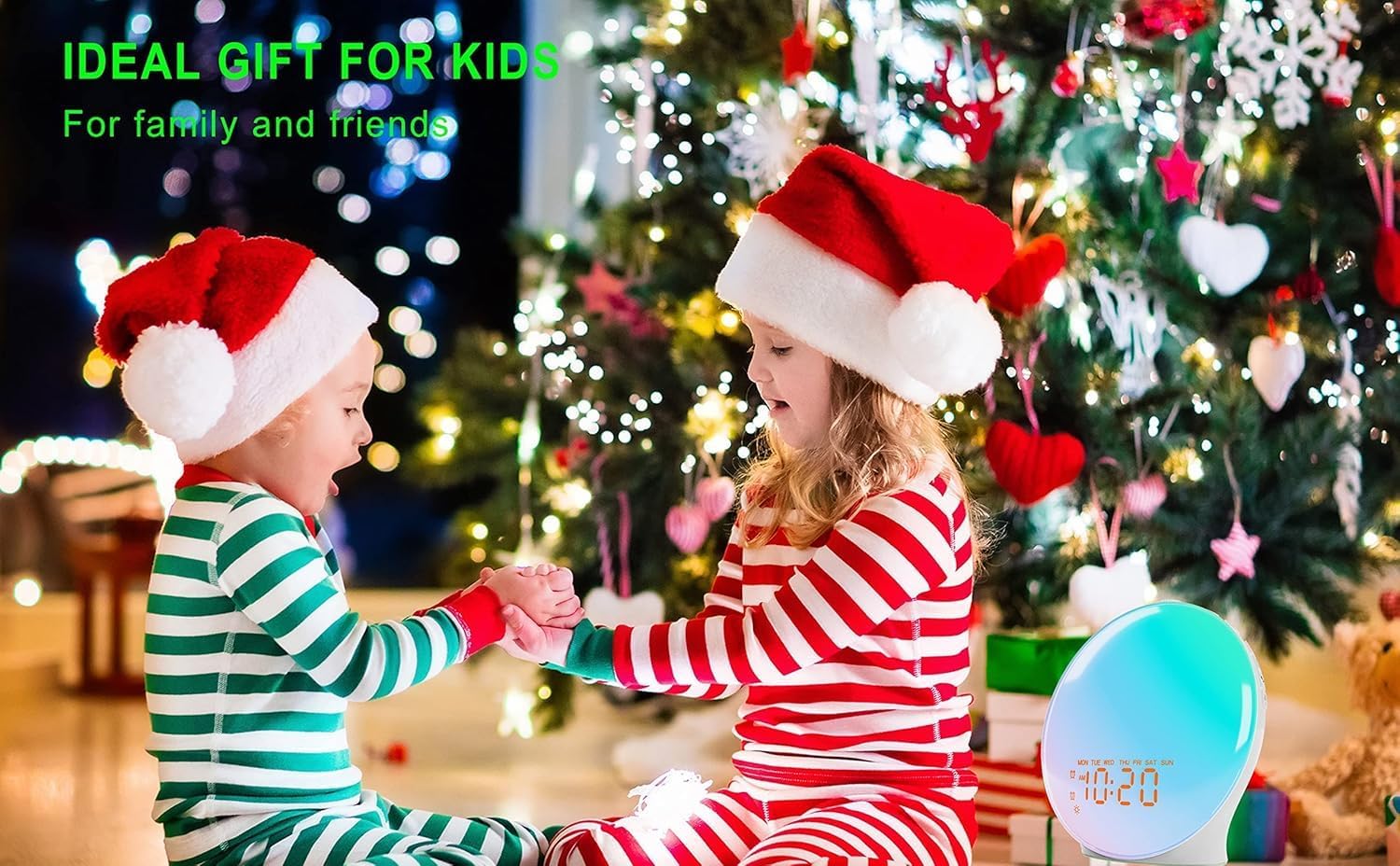 Wake Up Light Sunrise Alarm Clock for Bedroom, 17 Nightlights, Sound Machine with 5W Bluetooth Speaker, 25 Soothing Sounds, SleepTimer, Dual Alarms, FM Radio, Ideal Gift for Baby, Kids, Adults, Senior