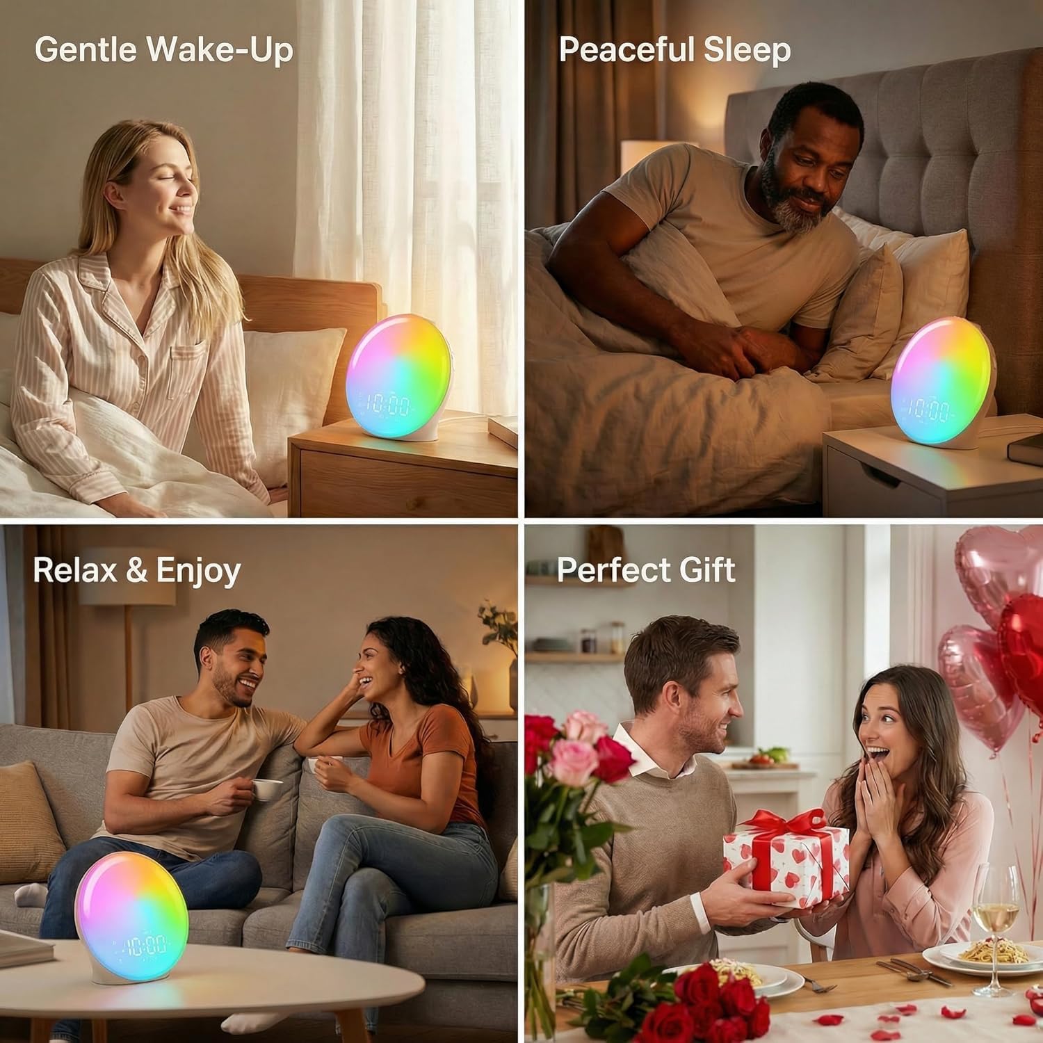 Home Lifestyle & Focus Wake Up Light Sunrise Alarm Clock for Bedroom, 17 Nightlights, Sound Machine with 5W Bluetooth Speaker, 25 Soothing Sounds, SleepTimer, Dual Alarms, FM Radio, Ideal Gift for Baby, Kids, Adults, Senior