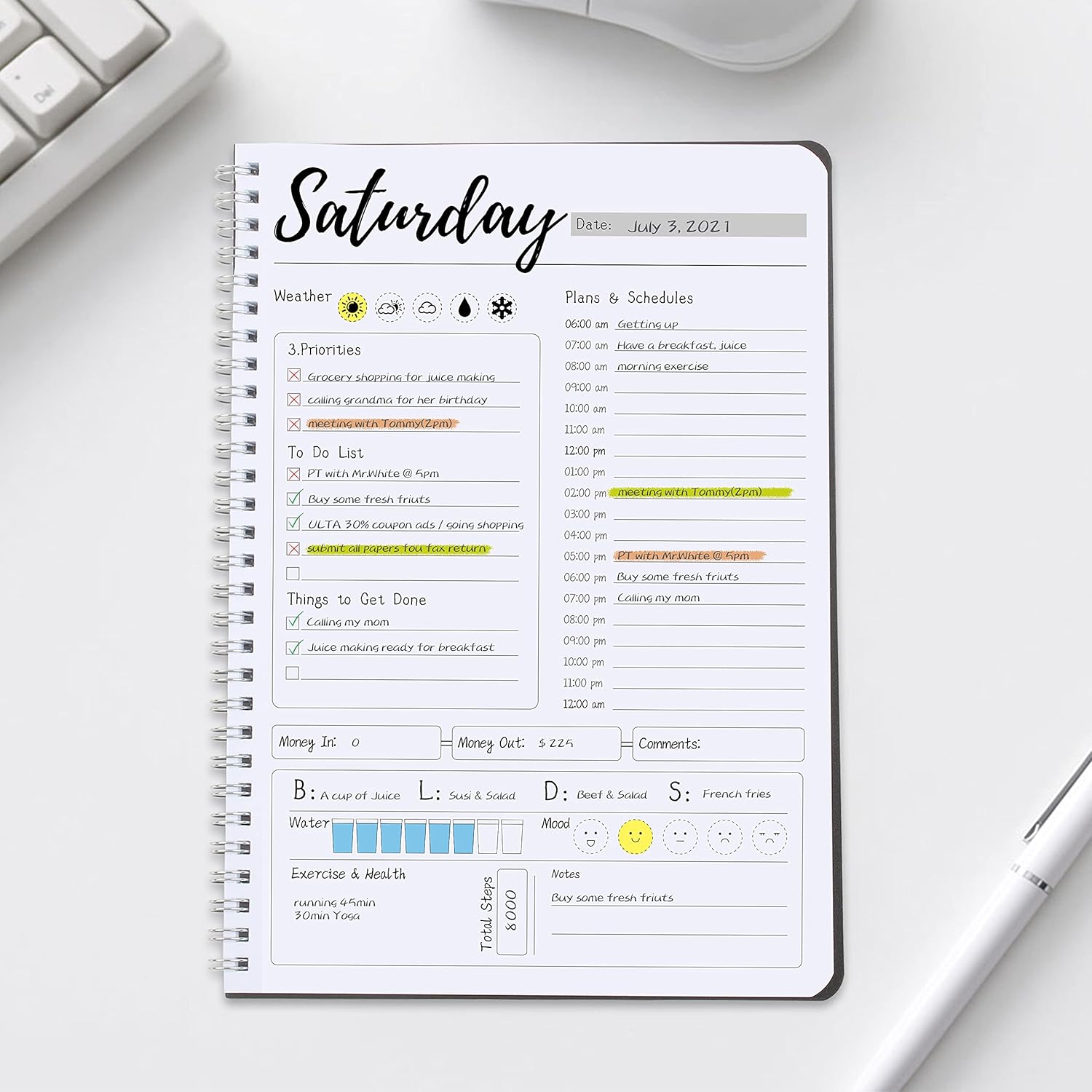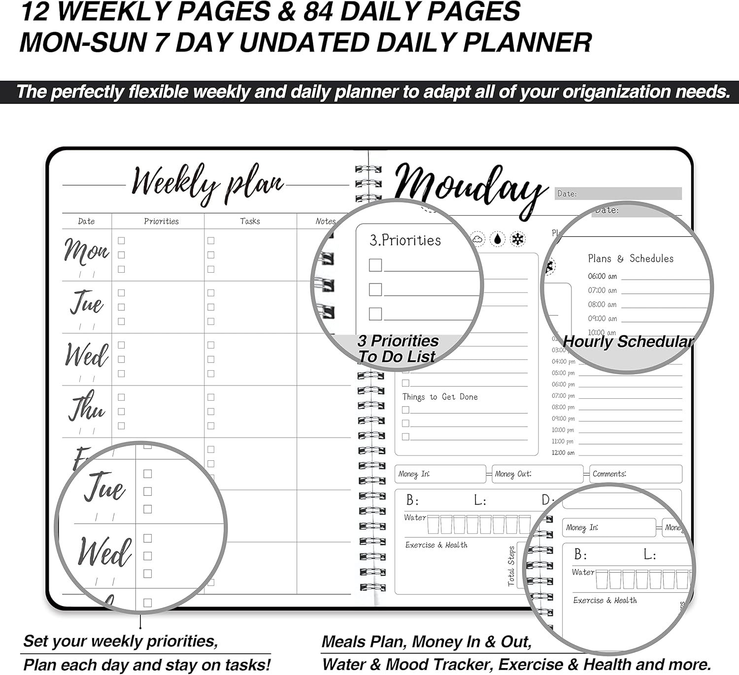 ORGANIZED YOUR DAYS: Staying organized has never been easier - This daily to do planner included Hourly Schedules, To Do List, Tasks, Expense tracker, Meals, Water Take-in, Mood, Exercise & Health, make you plan & work smarter not harder for efficient daily time management!