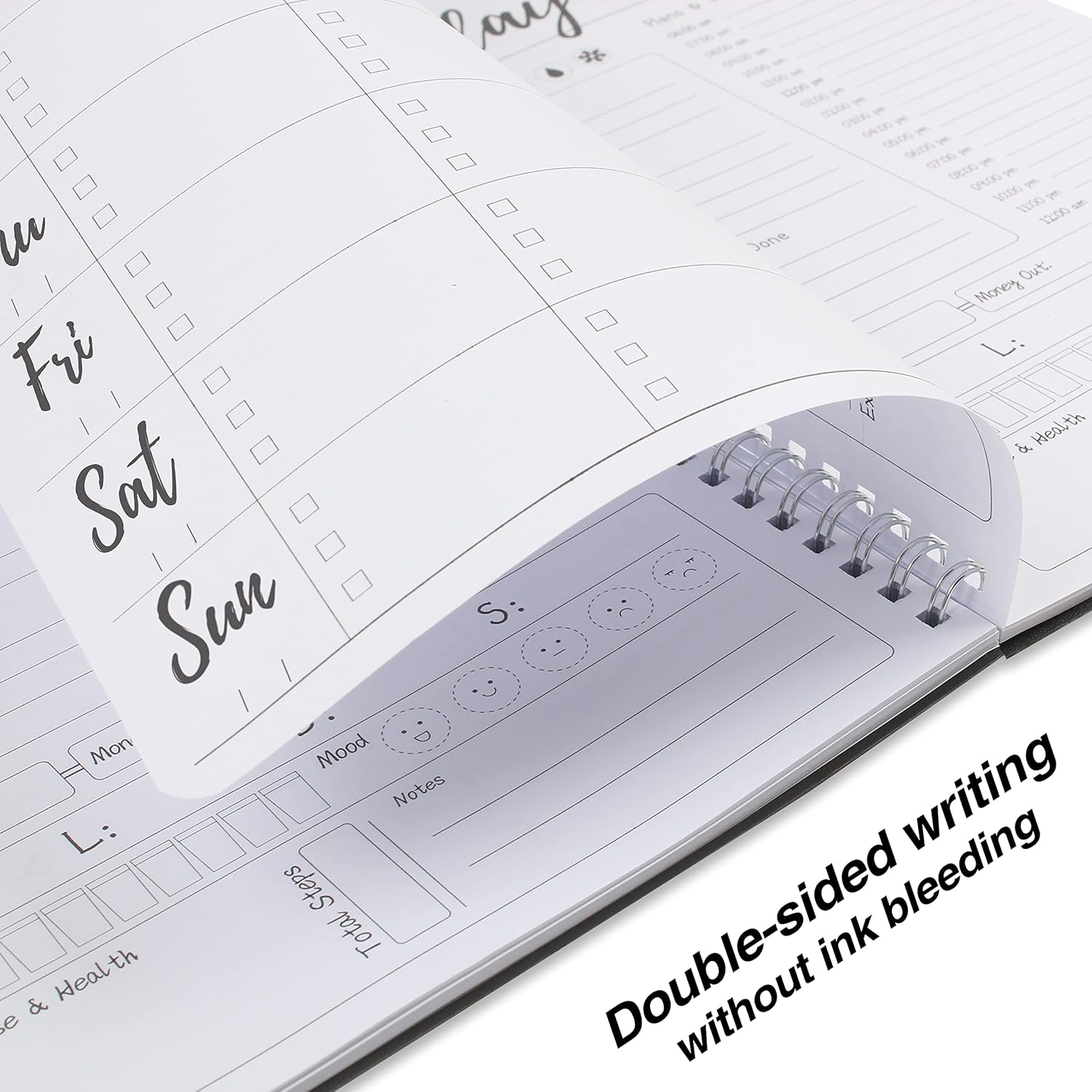 THICK WHITE PAPER WITH CLEAR PRINTING: This agenda notebook with thick white paper for smooth and easy writing without ink bleeding, You can use your favorite pen without any problems. No wasted space with clean printing - so fill it up as you please with today's plan.