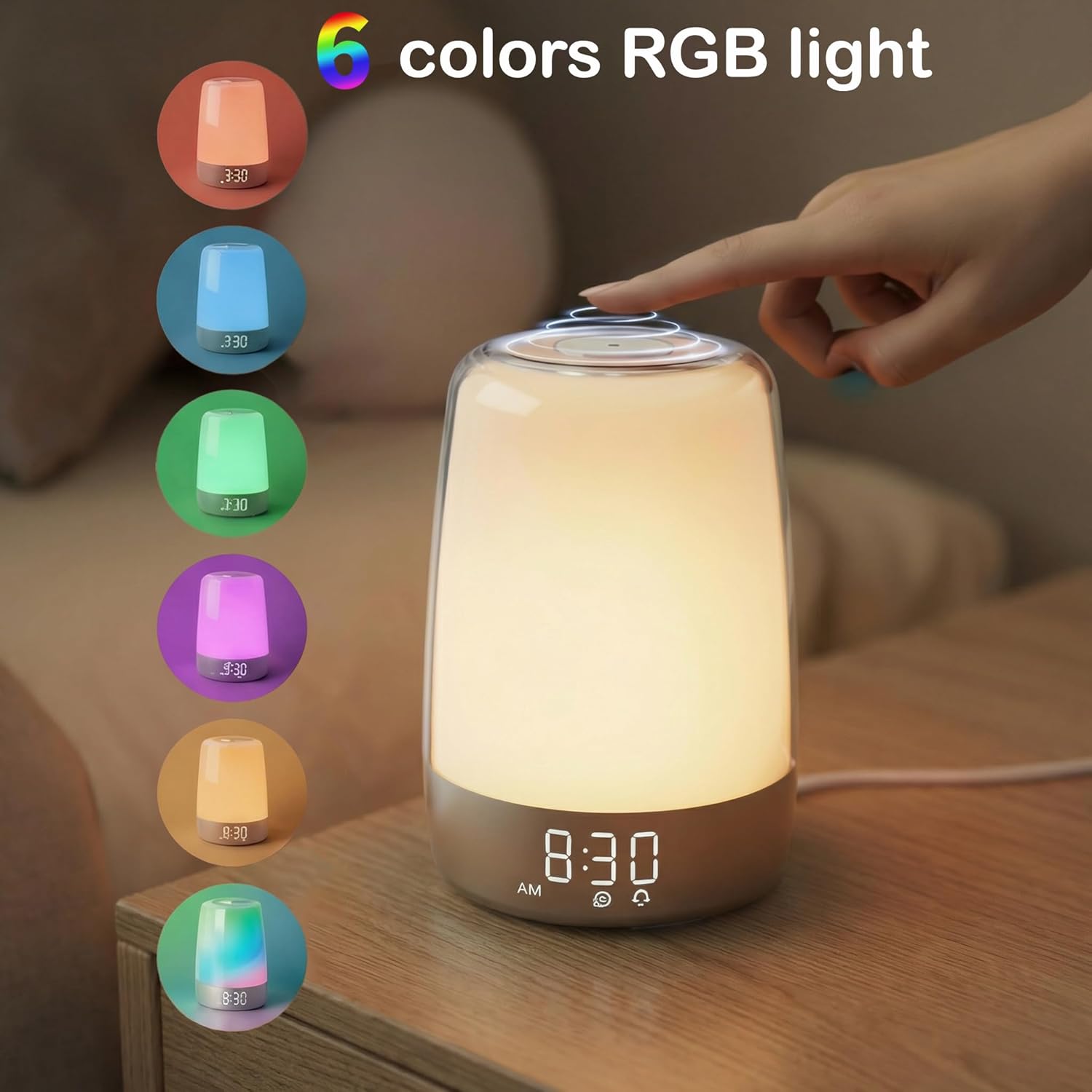 winshine Touch Wake Up Night Light with Sunrise Simulation Alarm Clock, 3 Ways Dimmable Warm White Bedside Lamp for Kid Bedrooms RGB Ambient Table Nightstand Light,Sleep Aid Snooze Timer Mode